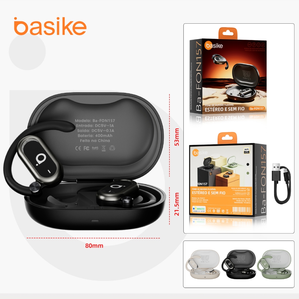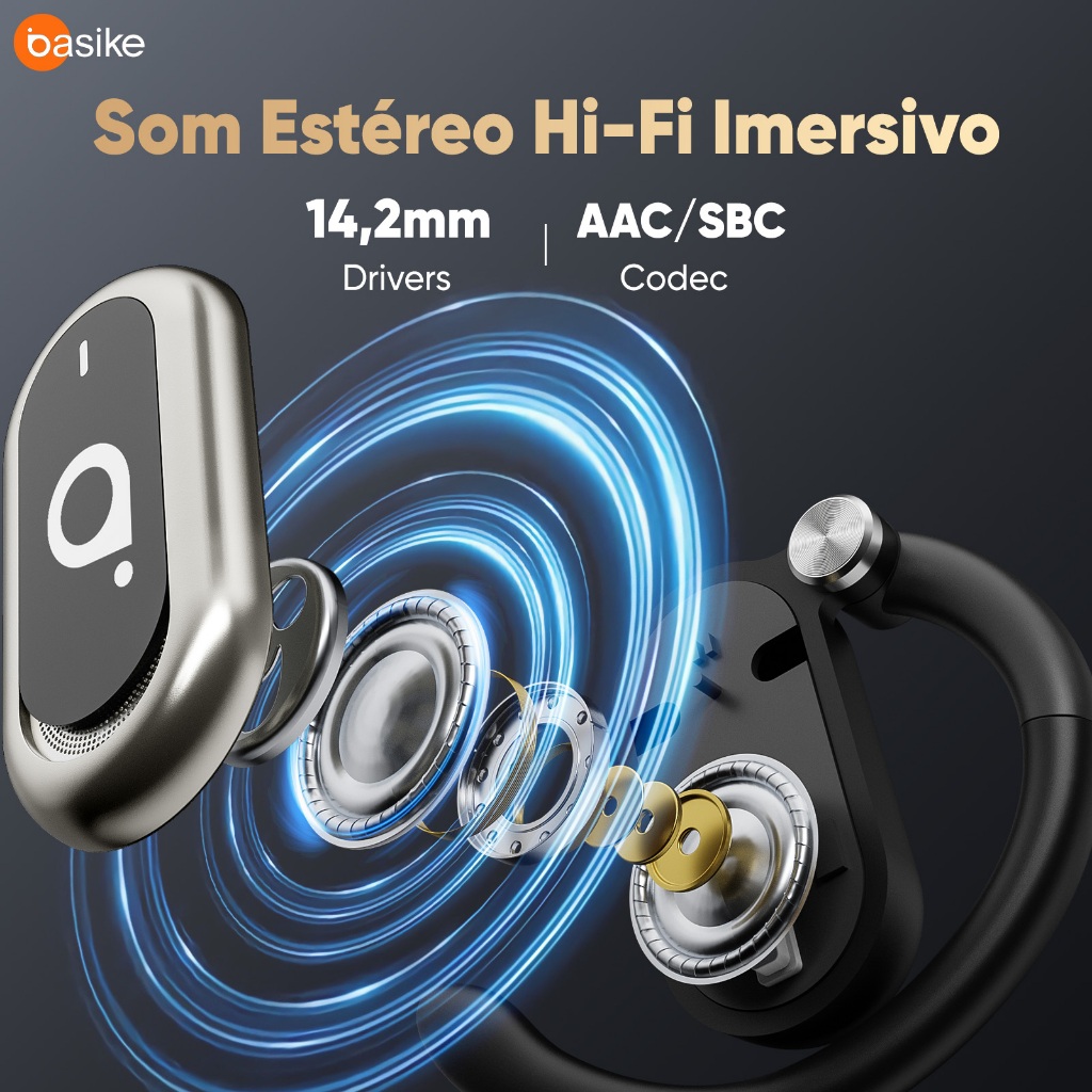 Basike OWS fone de ouvido bluetooth sem fio transmissão óssea Sport Orelhas Penduradas fone Esportes Bluetooth 5.4 IPX4