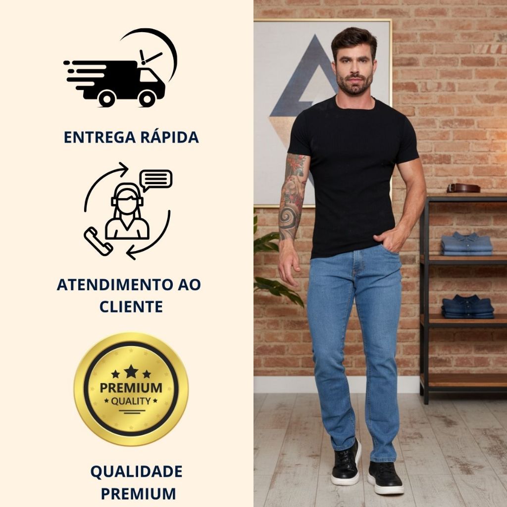 Calça Jeans Masculina Tradicional Reta Com Elastano Premium Bolsos funcionais