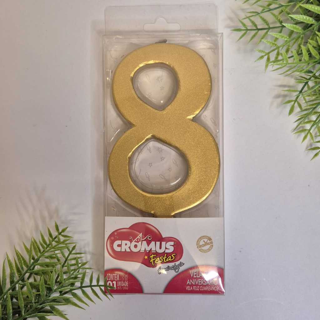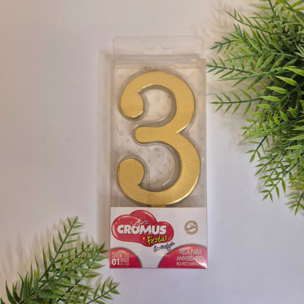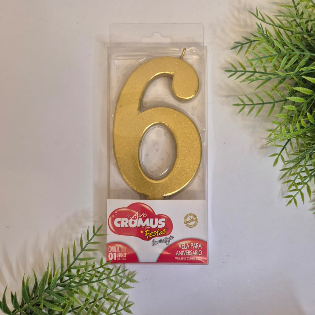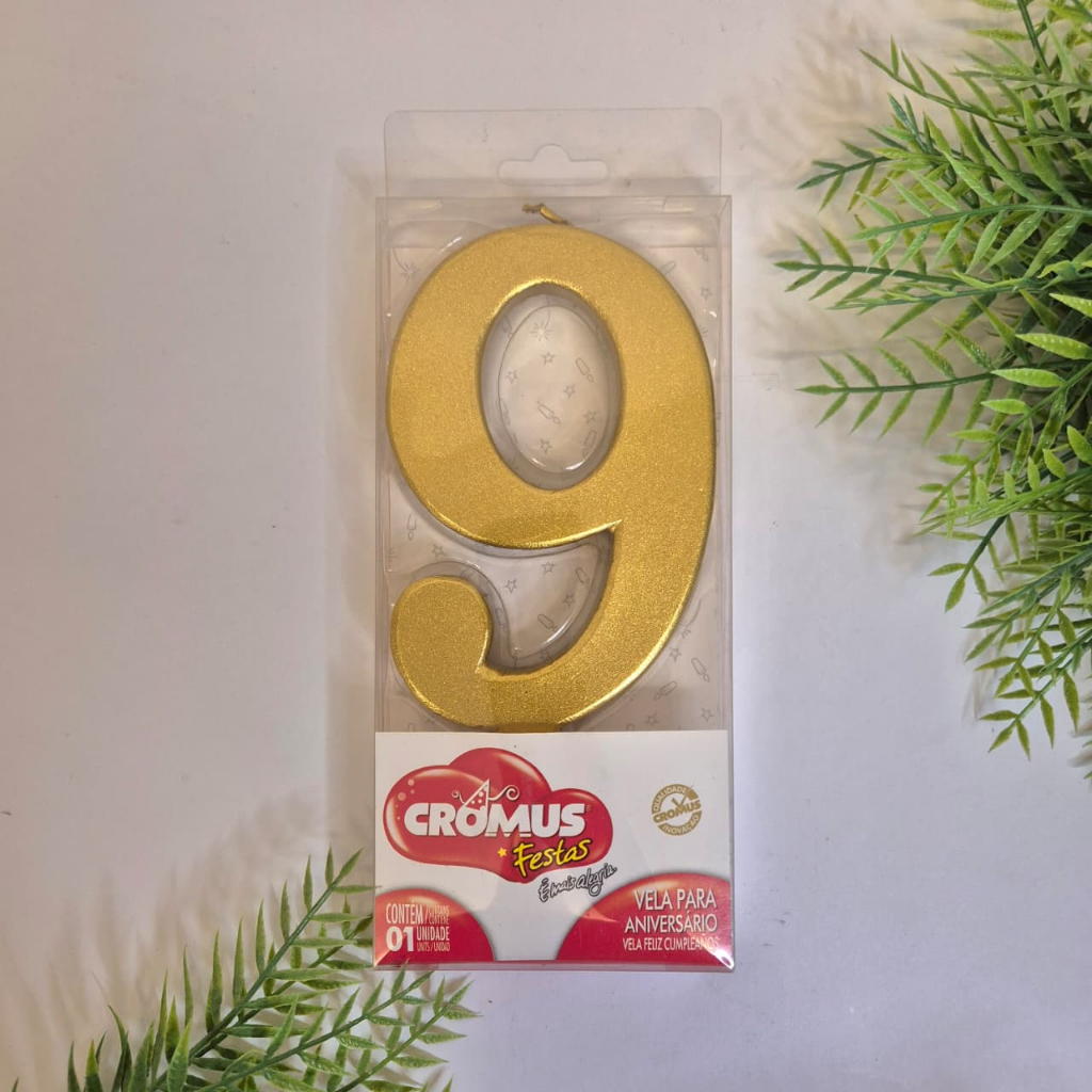 VELA EXTRA GRANDE para bolo de aniversário, cor dourada ouro metalizada.