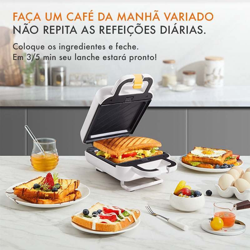 Gaabor Sanduicheira Elétrica Temperatura Constante de Dupla Face Assadeira Removível Antiaderente Portátil SM60M-WH01A