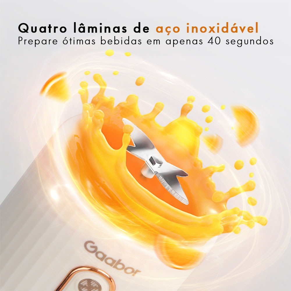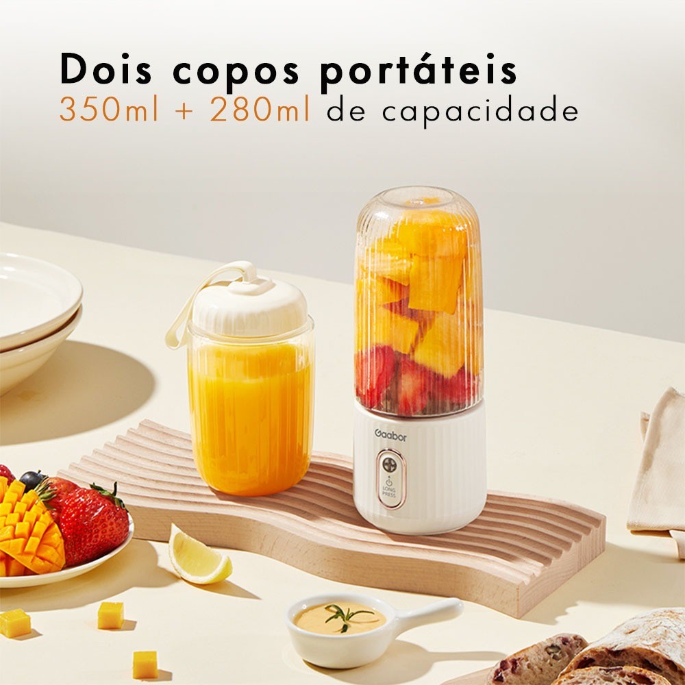 Gaabor Espremedor de Frutas Portátil Bateria de Grande Capacidade USB de Bolso 350 ml 280 ml 4 Lâminas FP03T-WH01A