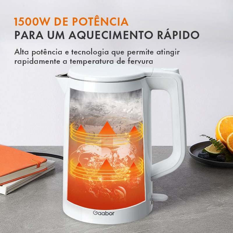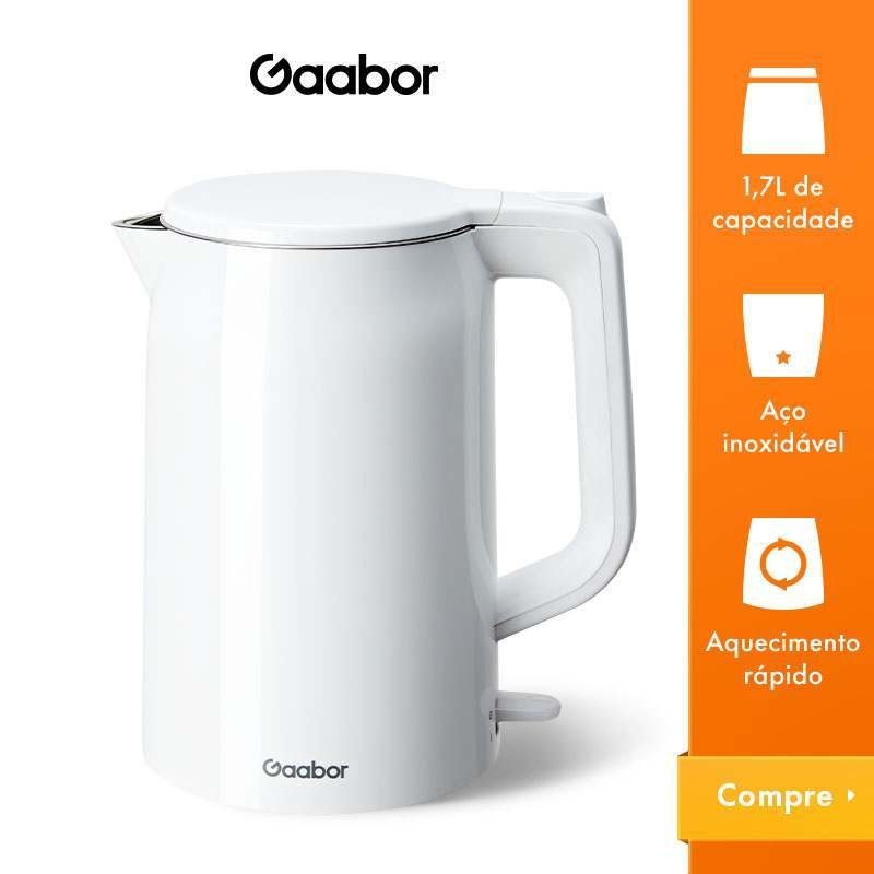 Gaabor Chaleira Elétrica 1,7L Parede Dupla Resistente ao Calor Aço Inoxidável EK20M-WH01A