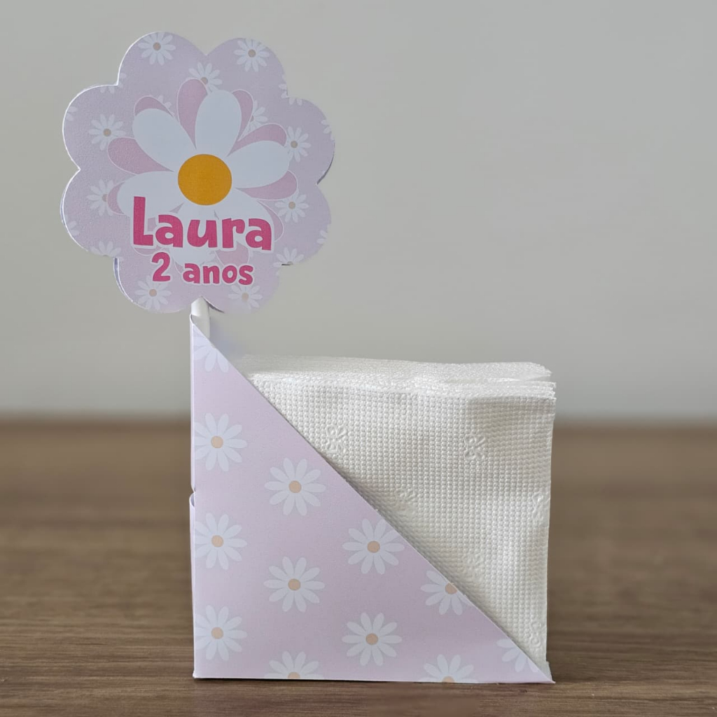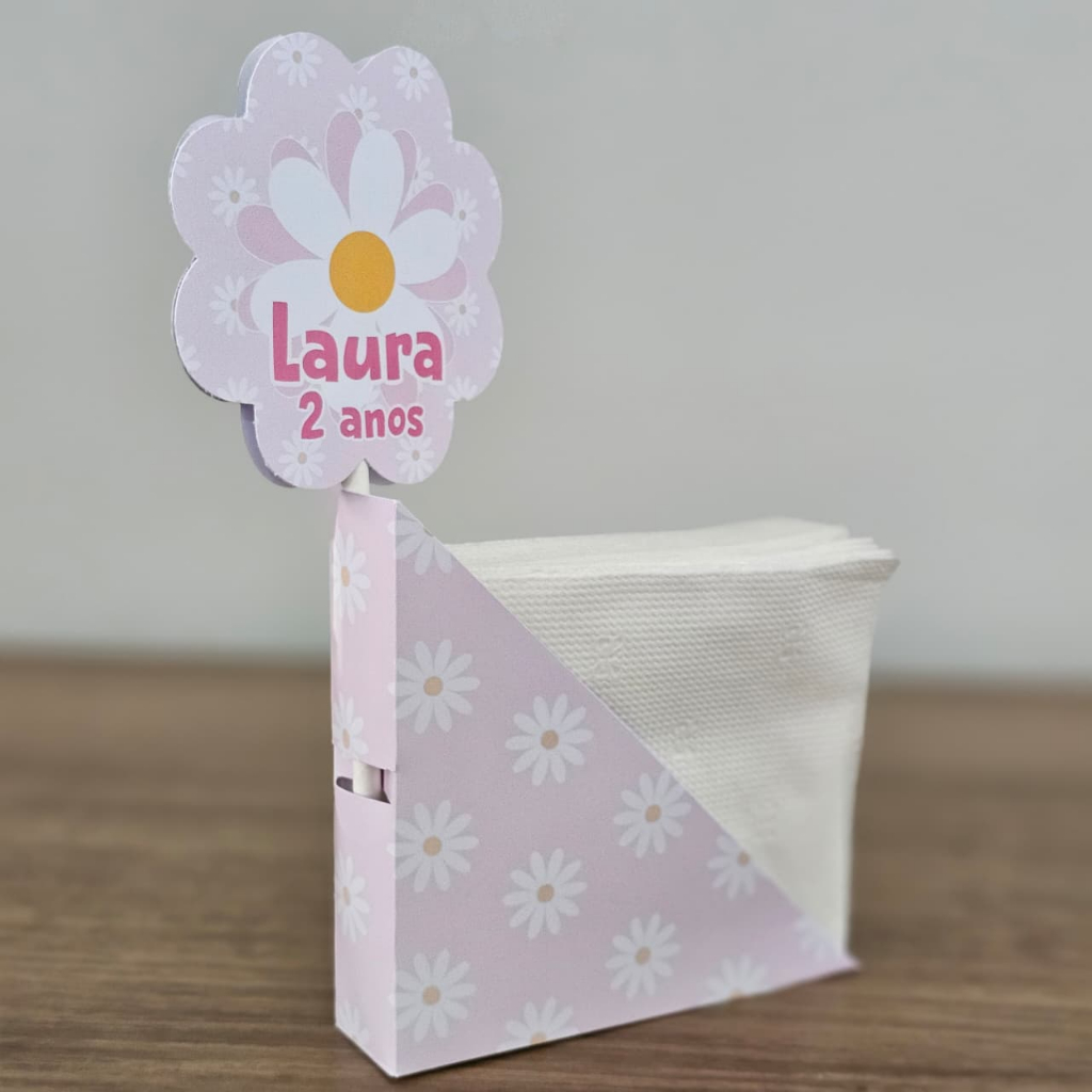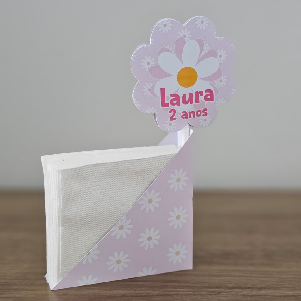 Centro de Mesa Porta Guardanapo Margaridas Personalizado Enfeite Festa Aniversário Chá Infantil