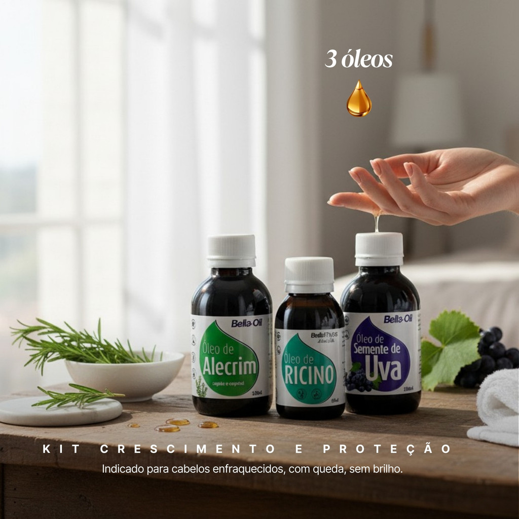 Kit Crescimento e Proteção – Óleos 100% Vegetais (Alecrim, Rícino e Semente de Uva) - BellaPhytus