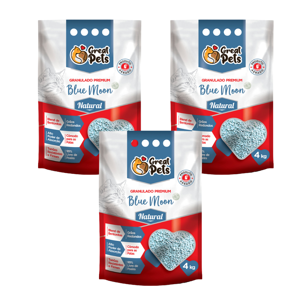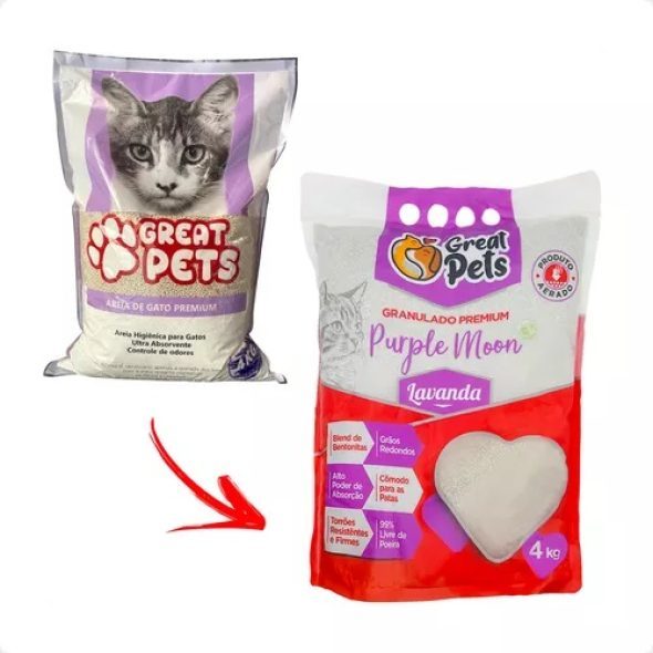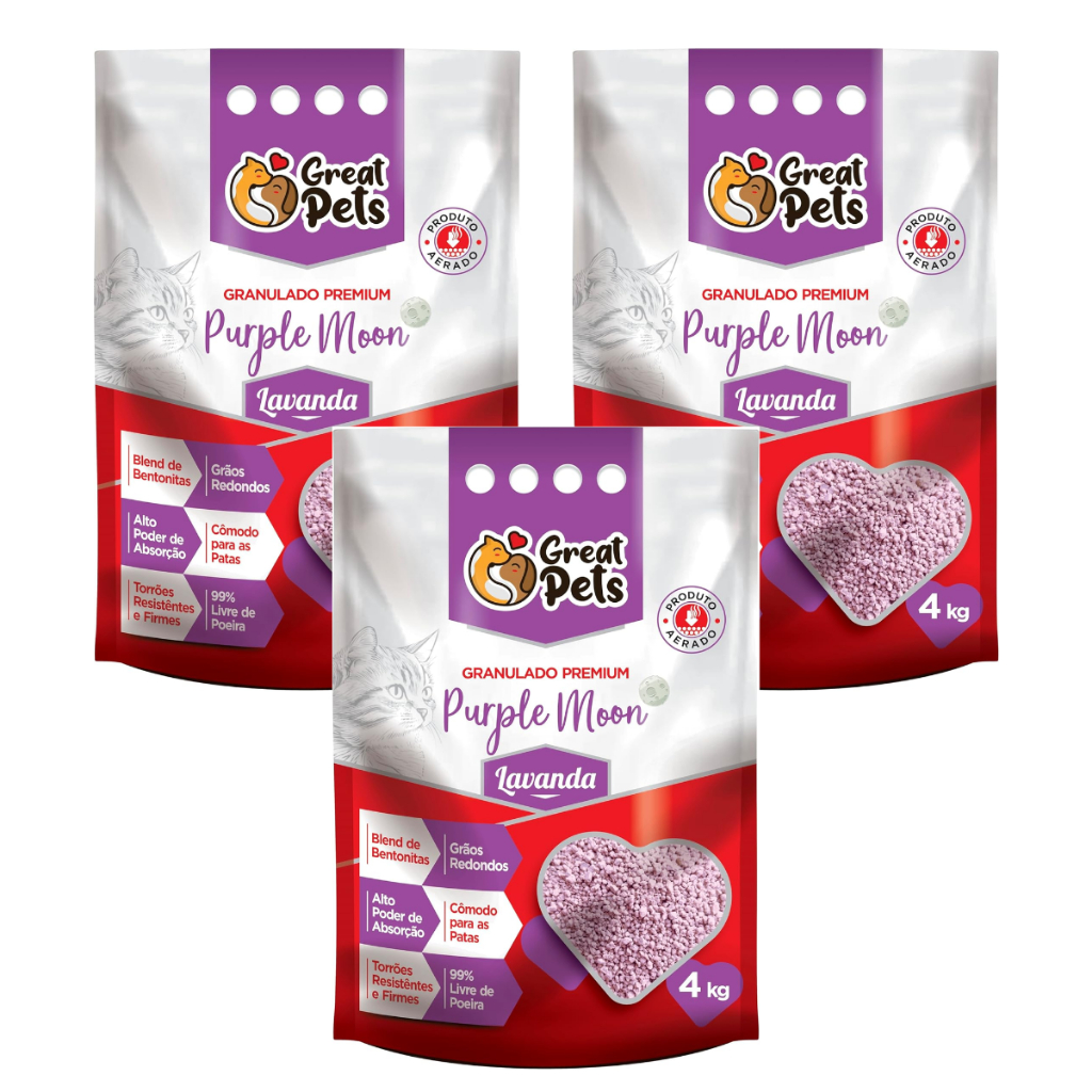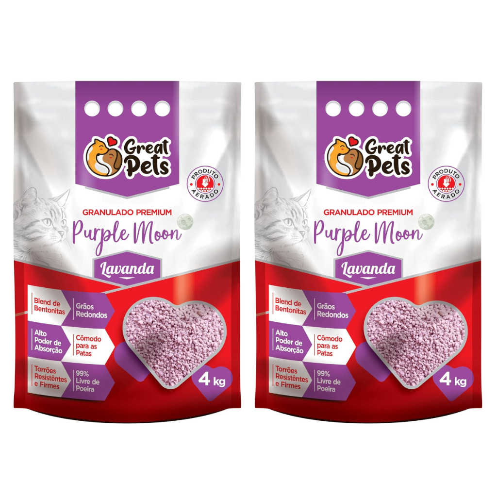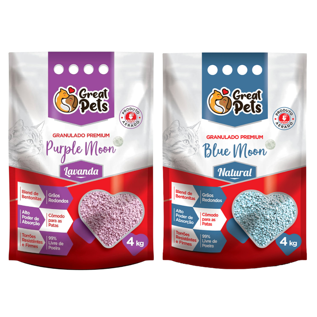 2 Areia Granulado Premium Blue Moon Natural e Purple Moon Bentonita 4kg Para Gatos Great Pets