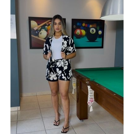 Conjunto kimono + short em tecido duna estampado