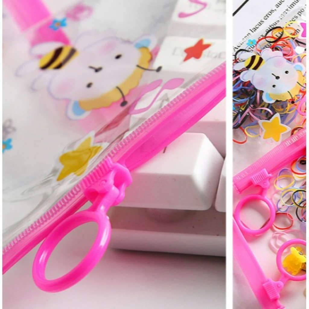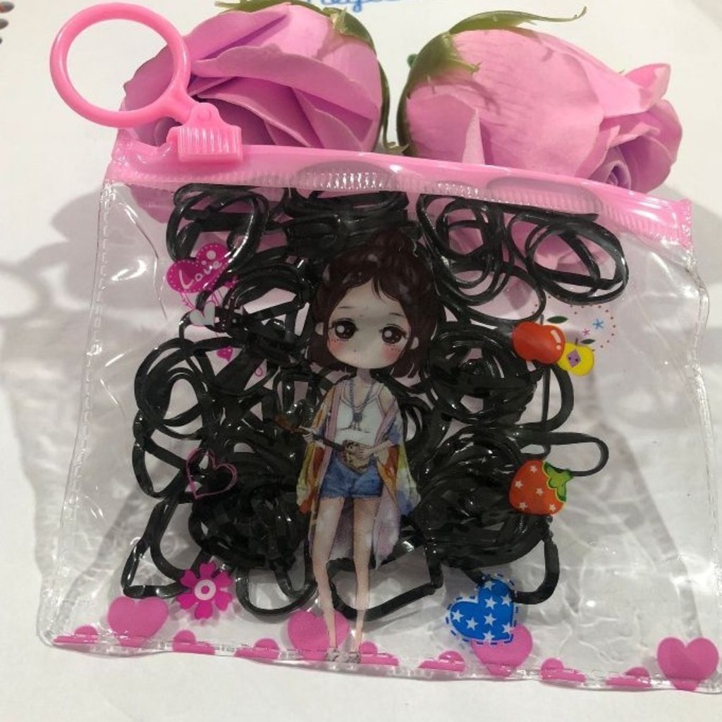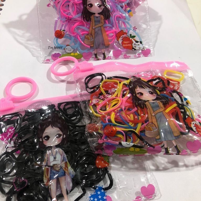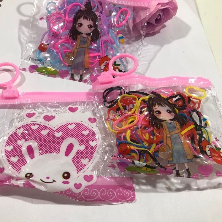 Kit 3/6/9/12 bolsinha com 100 Peças Elástico De Cabelo 1200 Peças Feminino Saco ziplock de desenho animadodioro
