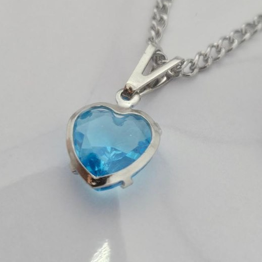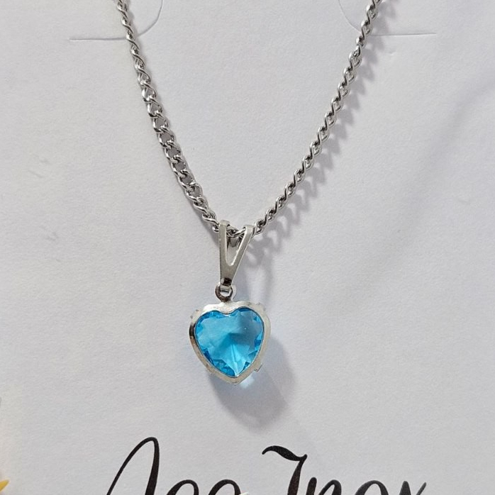 Colar Coração Feminino Pedra Zircônia Azul Aço Inox