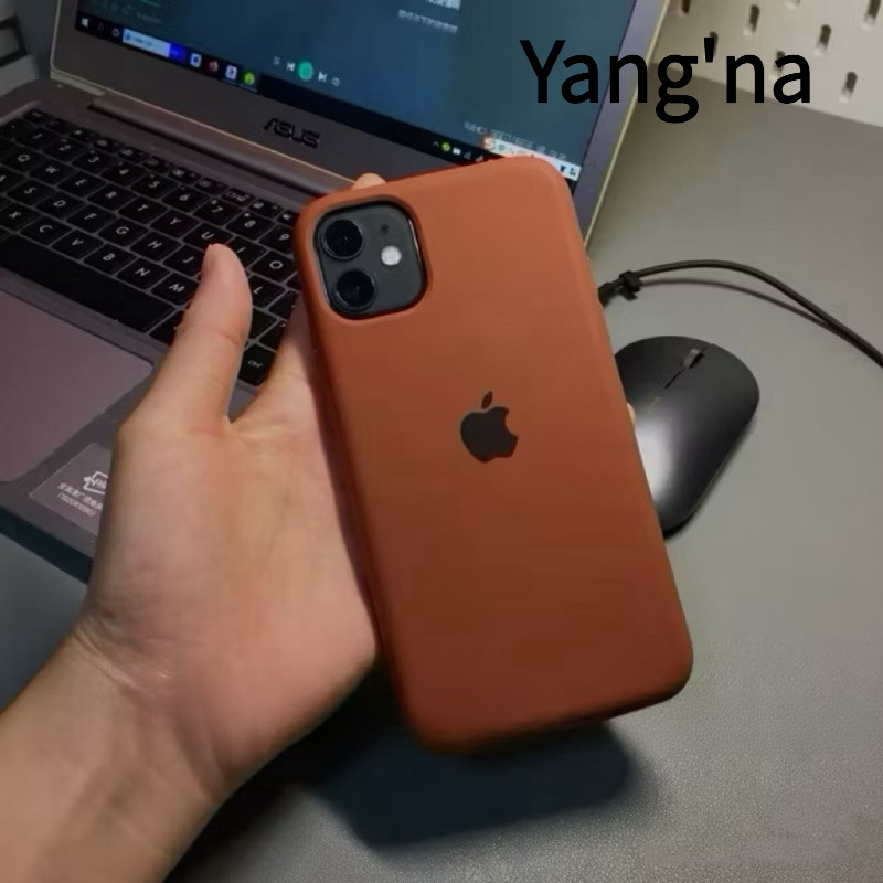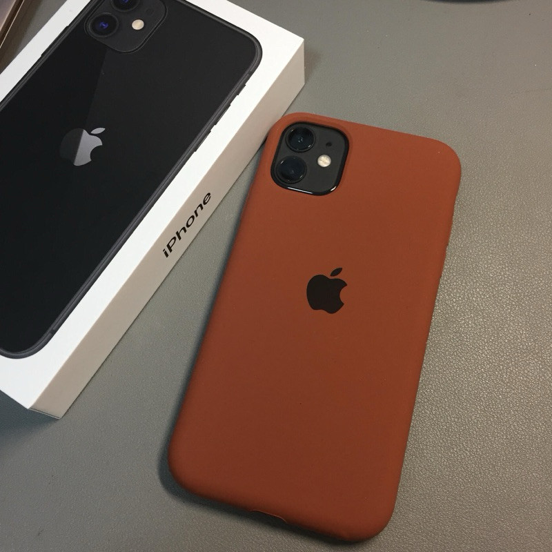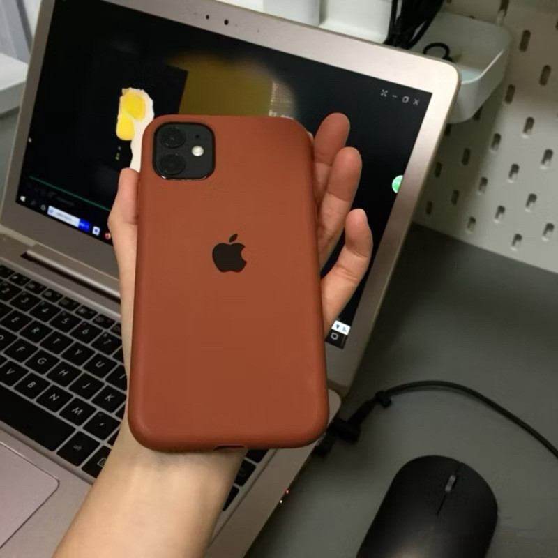 capa Silicone Aveludada Marrom Caramelo com Logo - Para iPhone Toda a Série iPhone (11/12/13/14/15/1617 Pro MaxOriginal