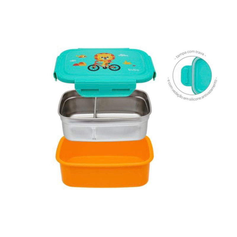 Bento Box Marmita Lancheira Infantil Buba Aço Inox Com Divisória Removível