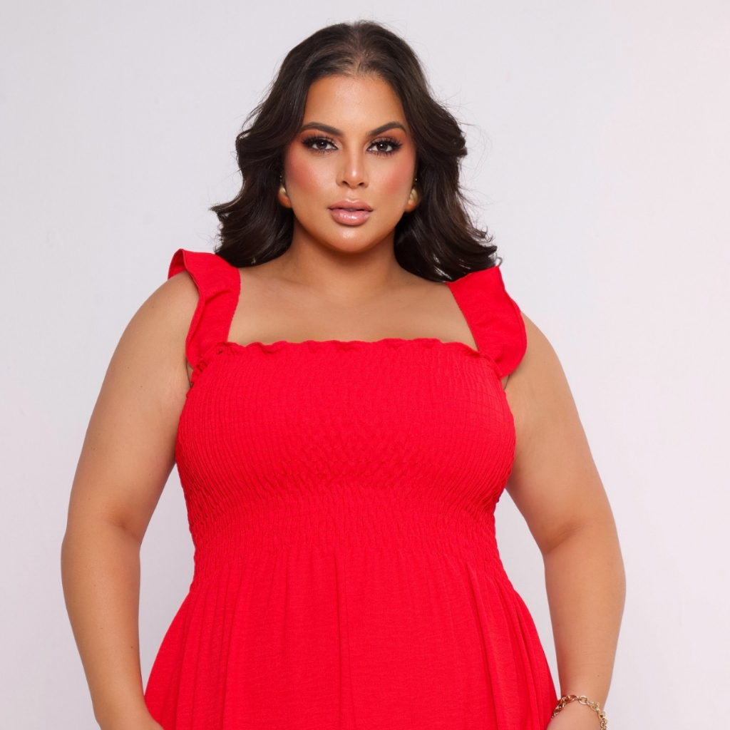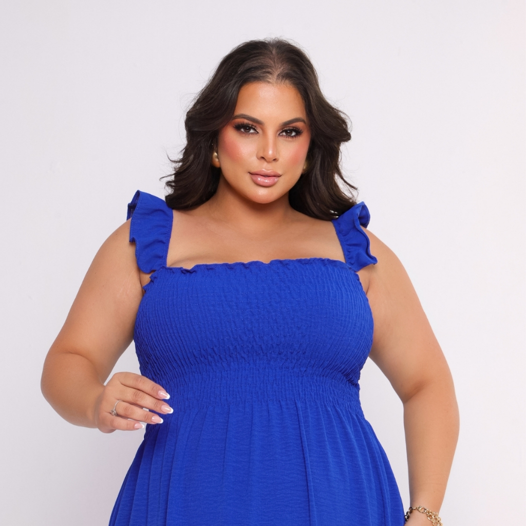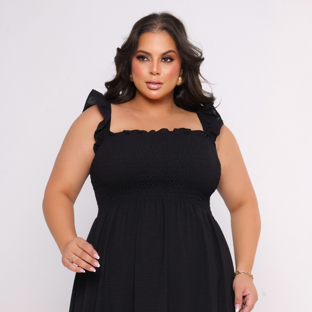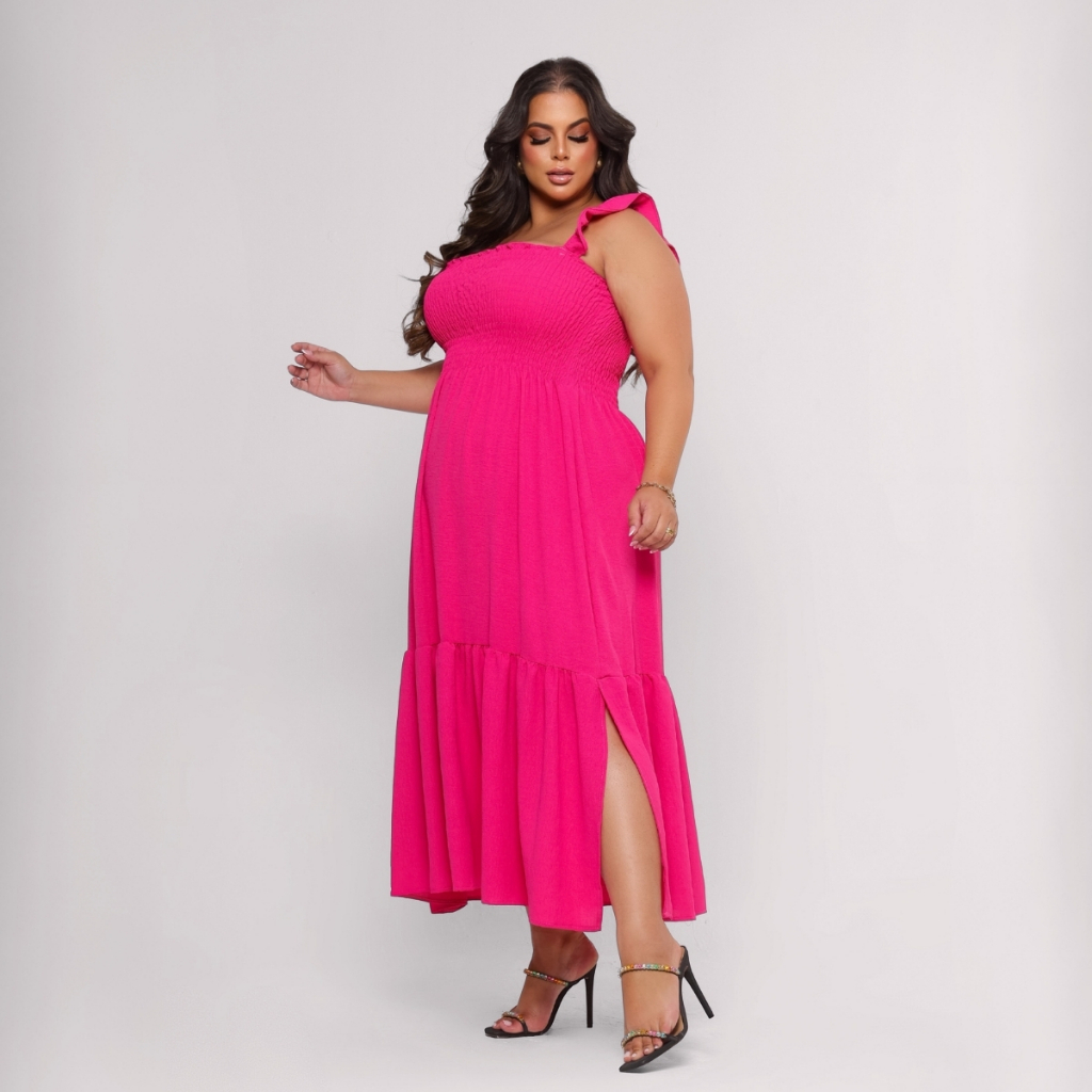 Vestido Longo Plus Size Feminino Com Silhueta Solta E Fenda