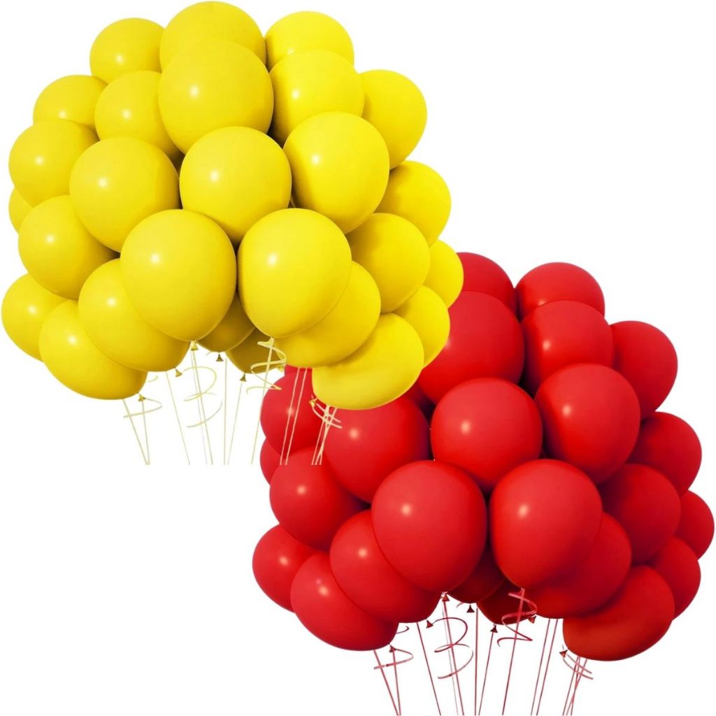 Kit 100 Balões Bexiga Latex 6,5" - Amarelo/Vermelho Decoração Aniversário Festas Eventos Bombeiro
