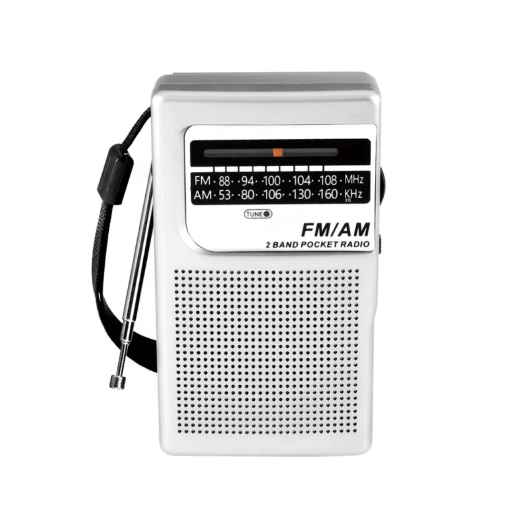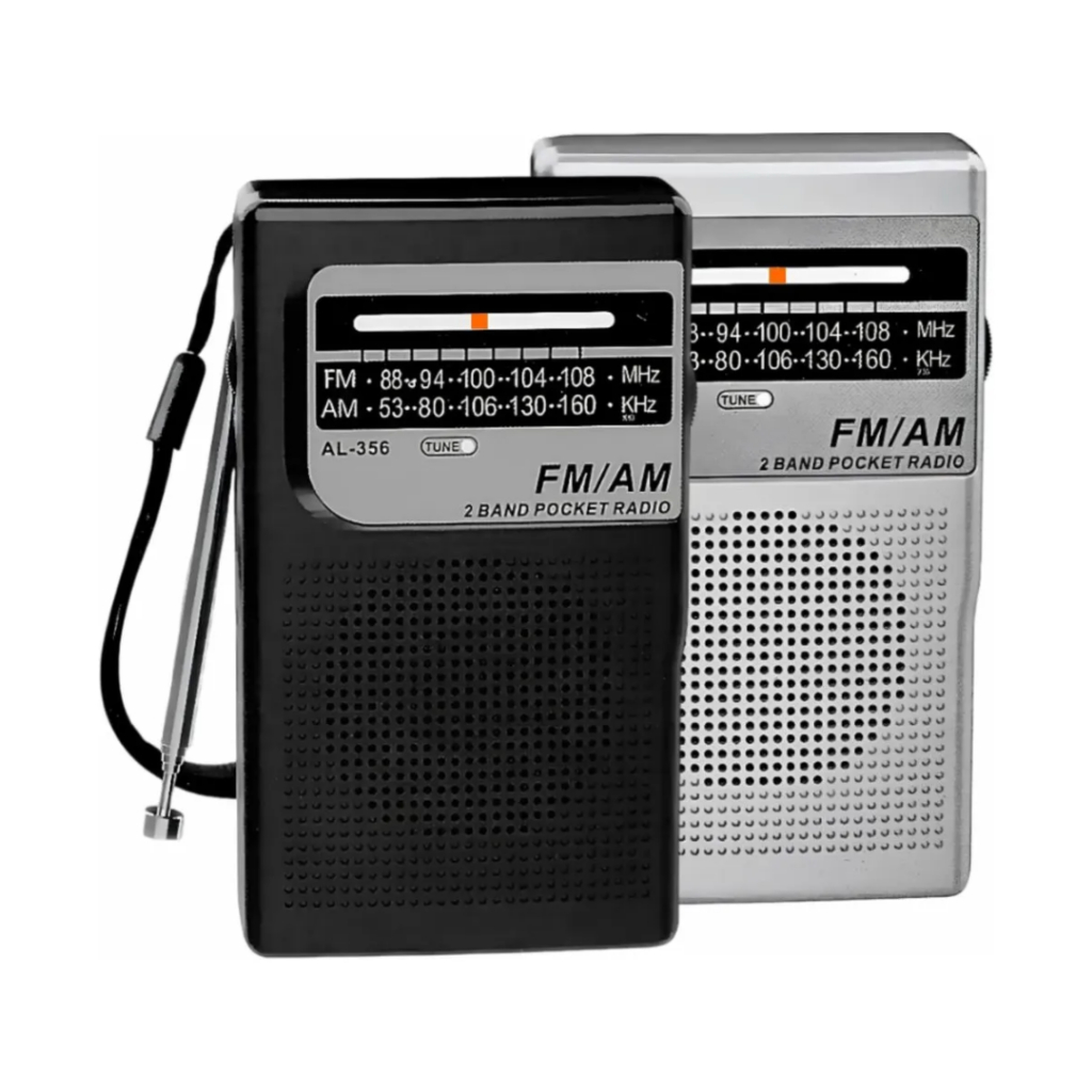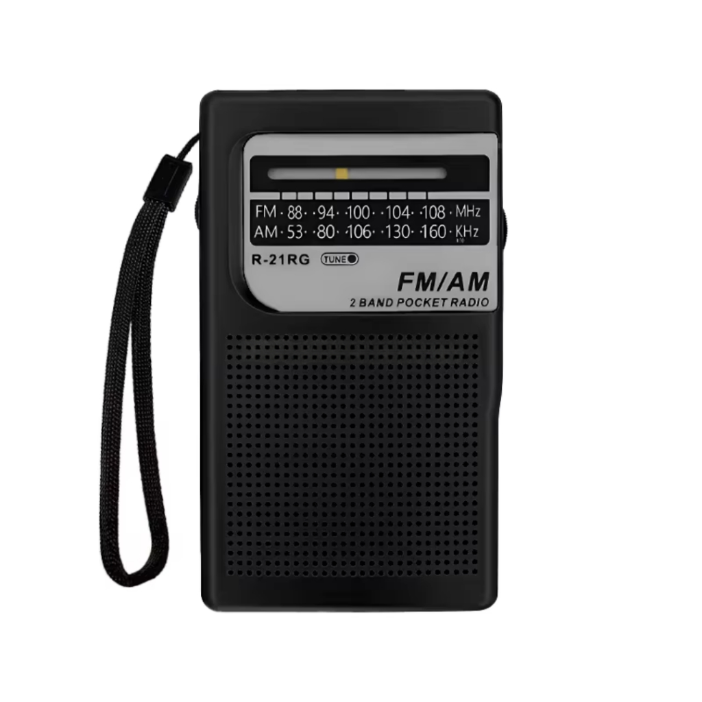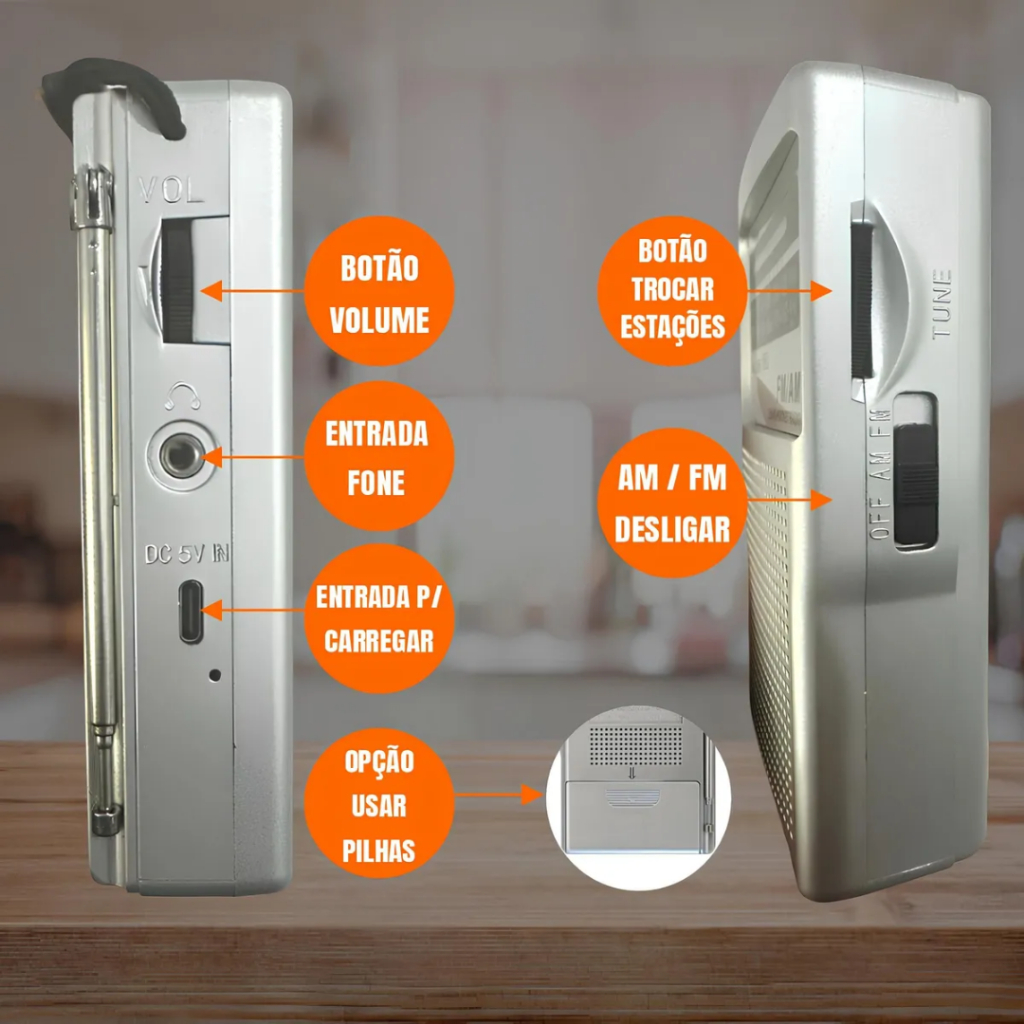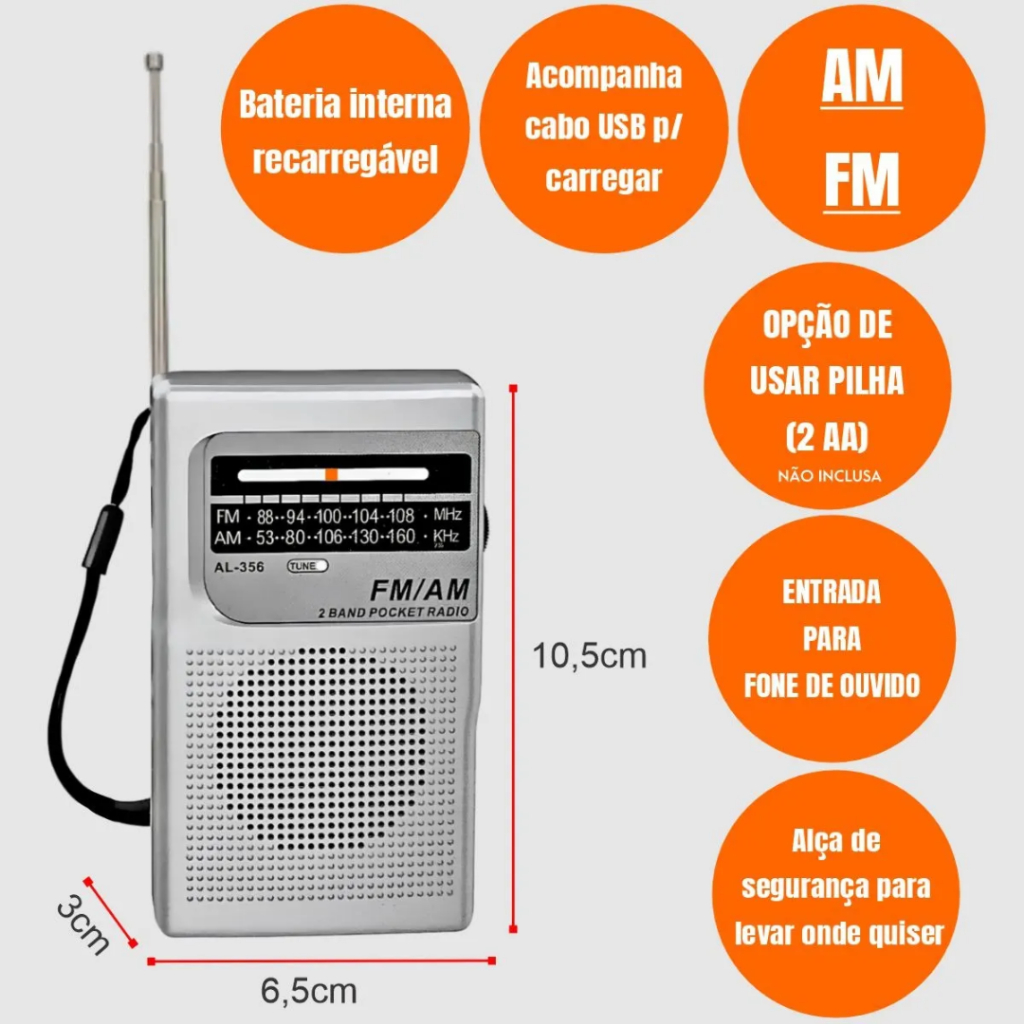 Mini Rádio Portátil AM FM Retrô com Bateria Recarregável e Pilha com Alça