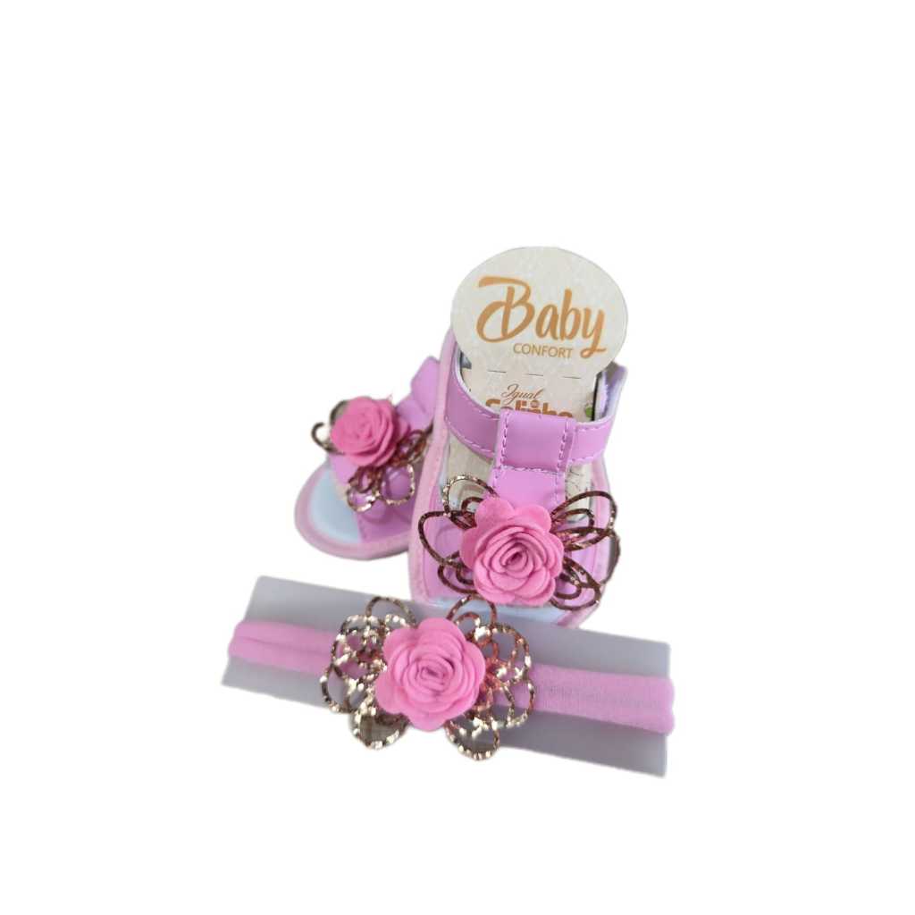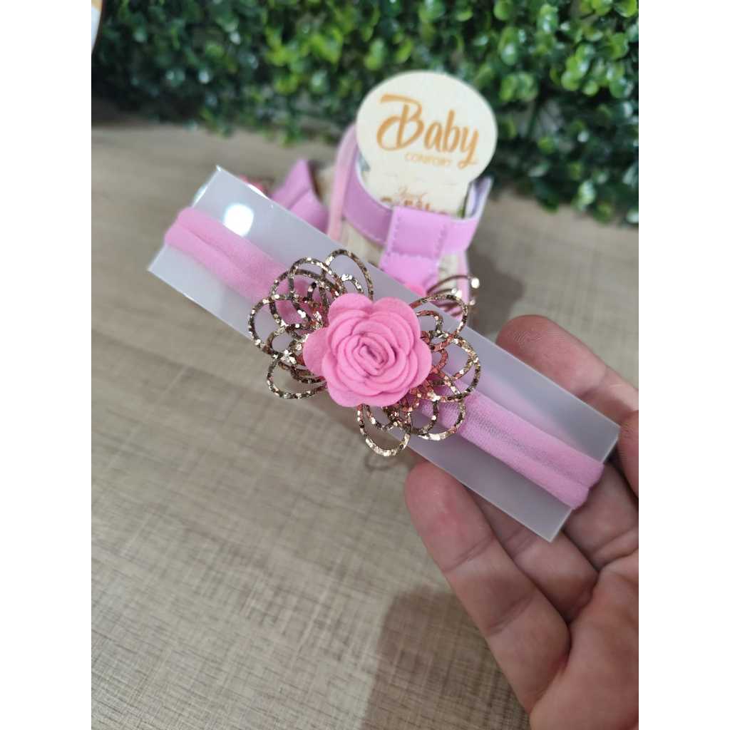 kit Sandalia Bebê + Faixa Flor de Cabelo Bebê -Rn -Aniversario Casamento Festa Batizado