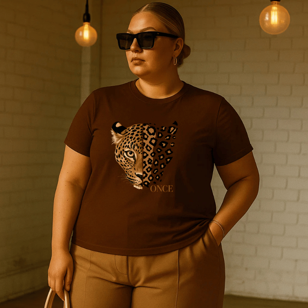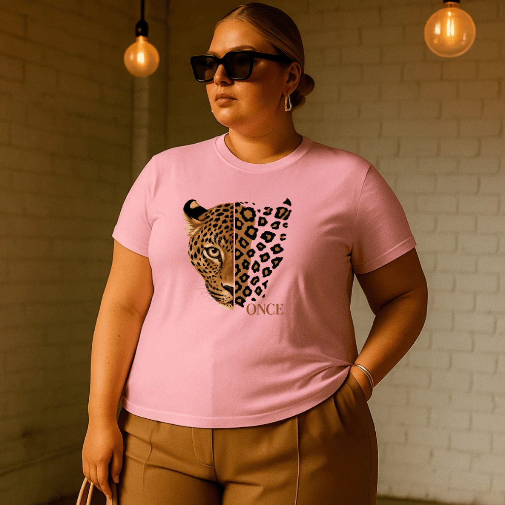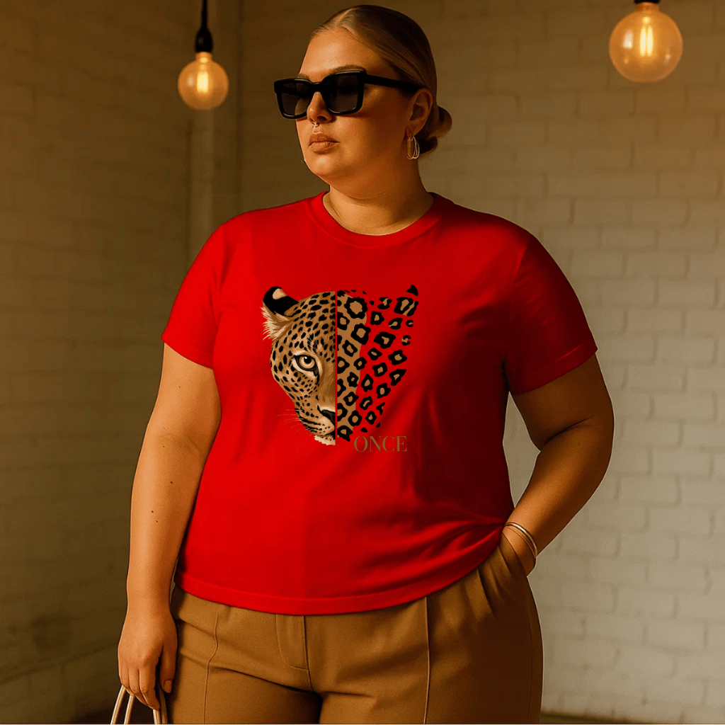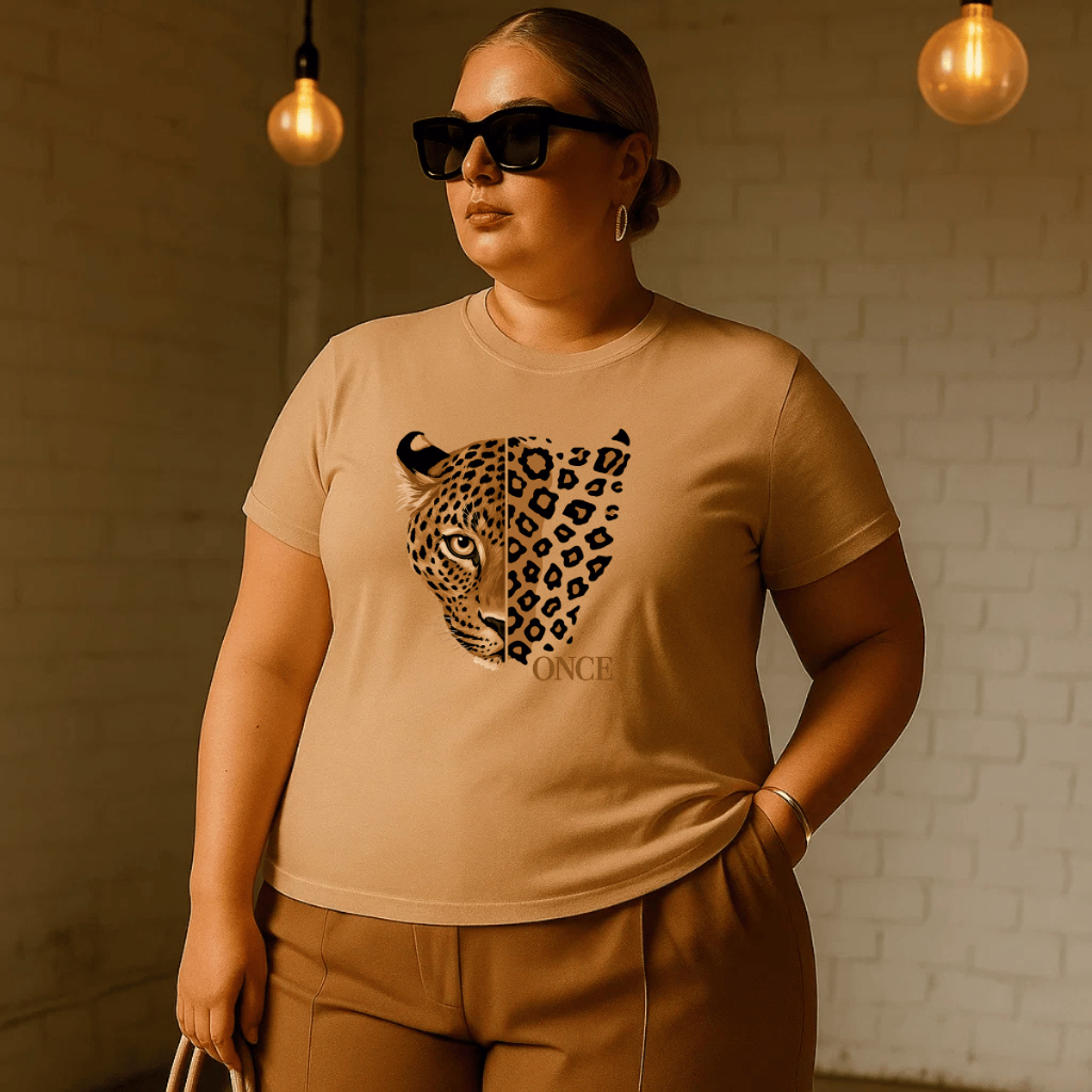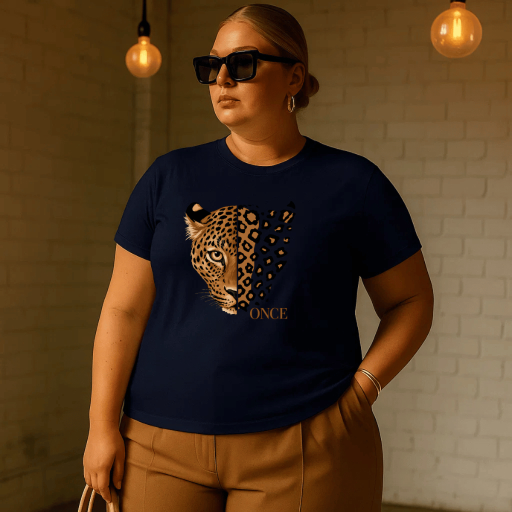 Camiseta Plus Size Feminina Estampada Onça 100% Algodão Premium Verão Academia Treino Blusa Camisa