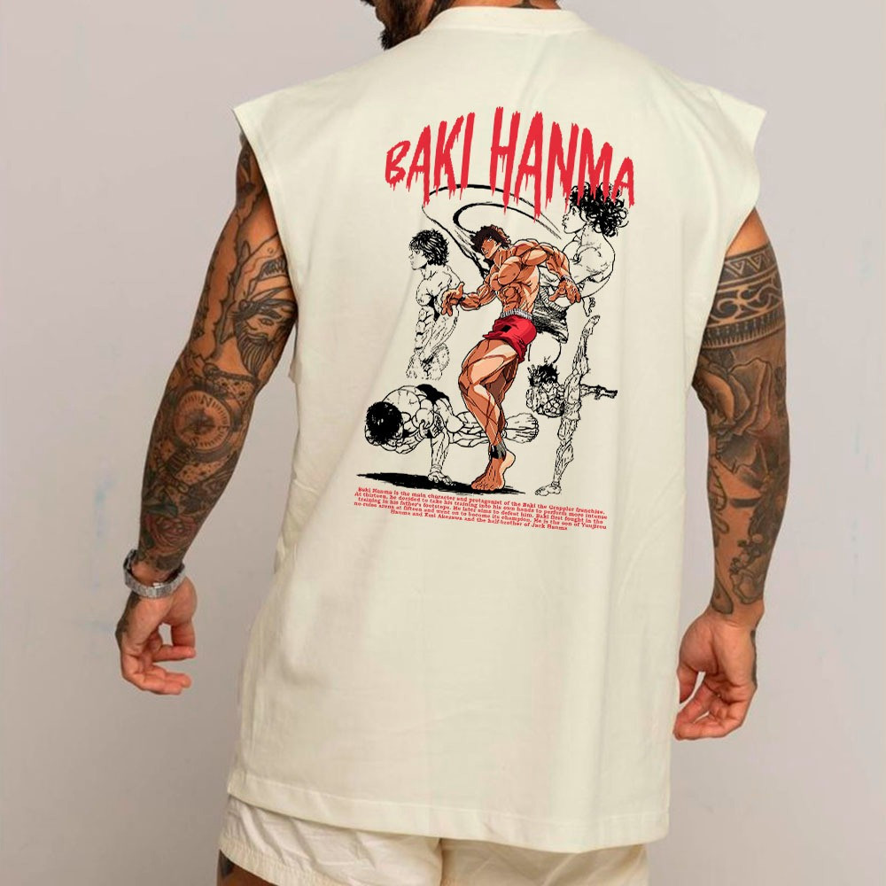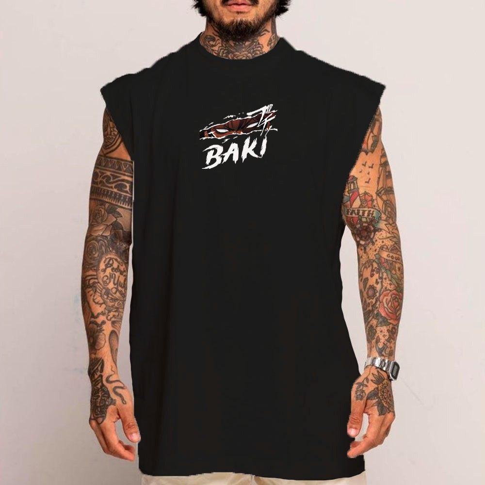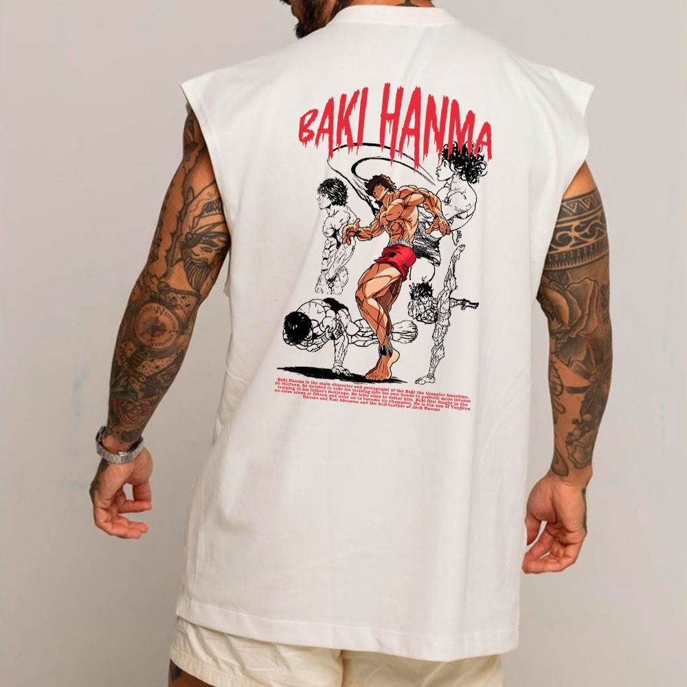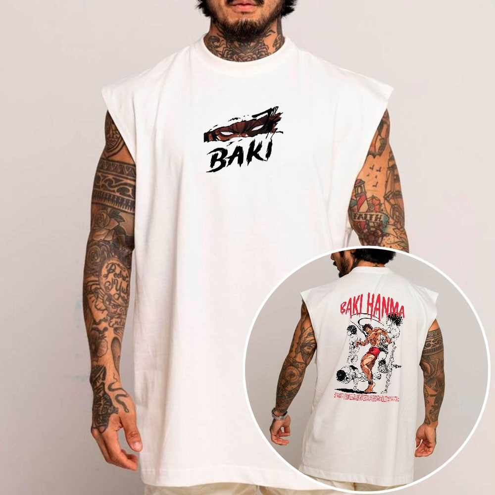 Camiseta Regata Longa Oversized Academia Algodão Baki Hanma BT580