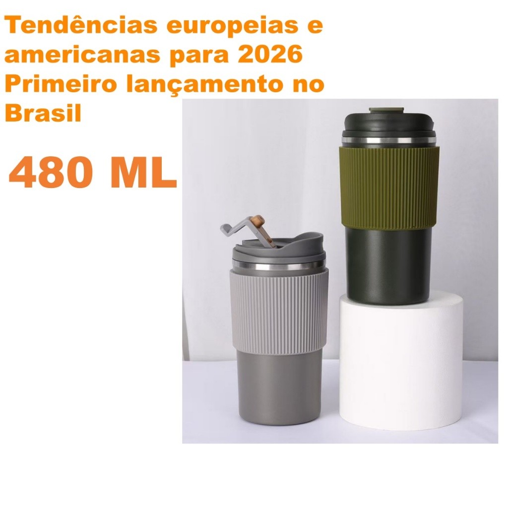 Caneca Copo Térmico com Tampa Aço Inox Quente E Frio 480ML Capa de silicone para copo Xícara de café carro SACUDIR DP