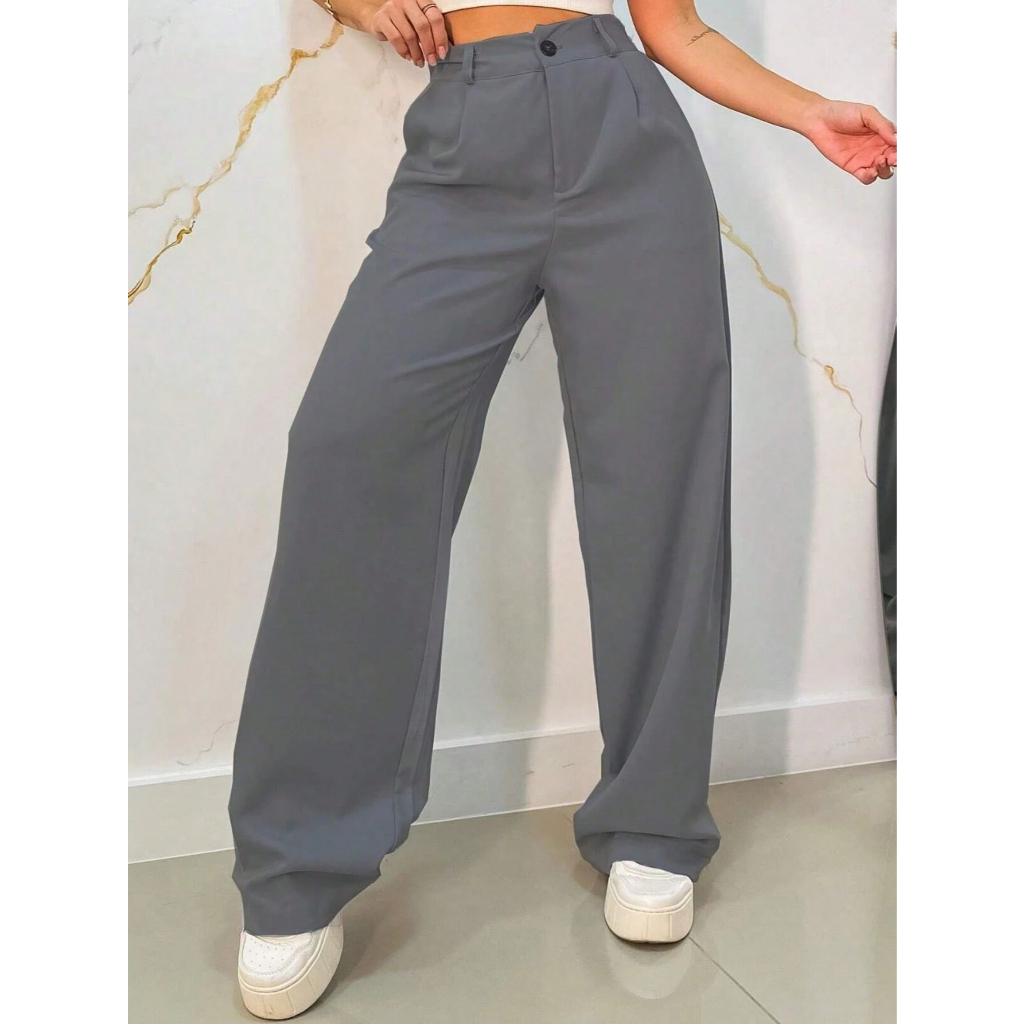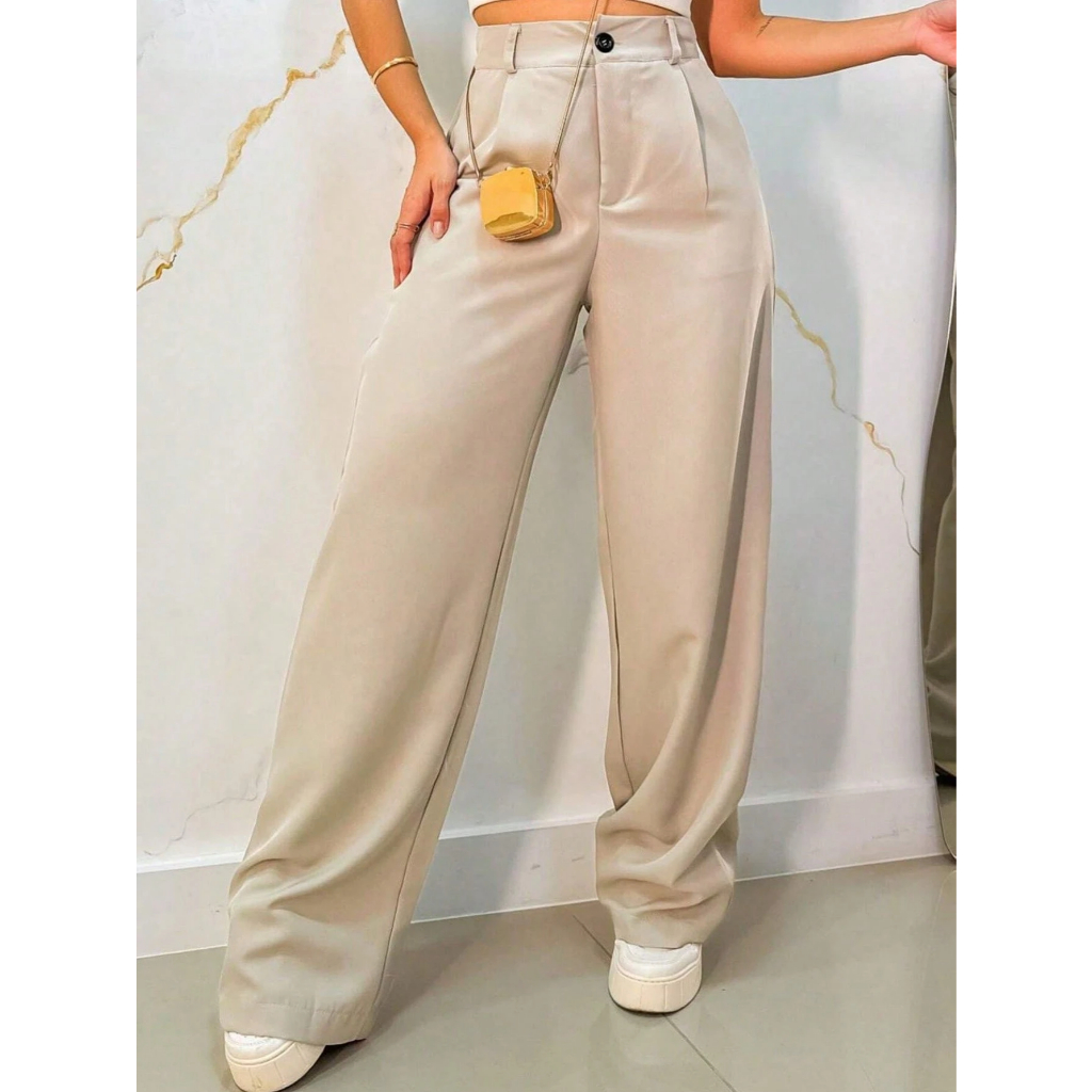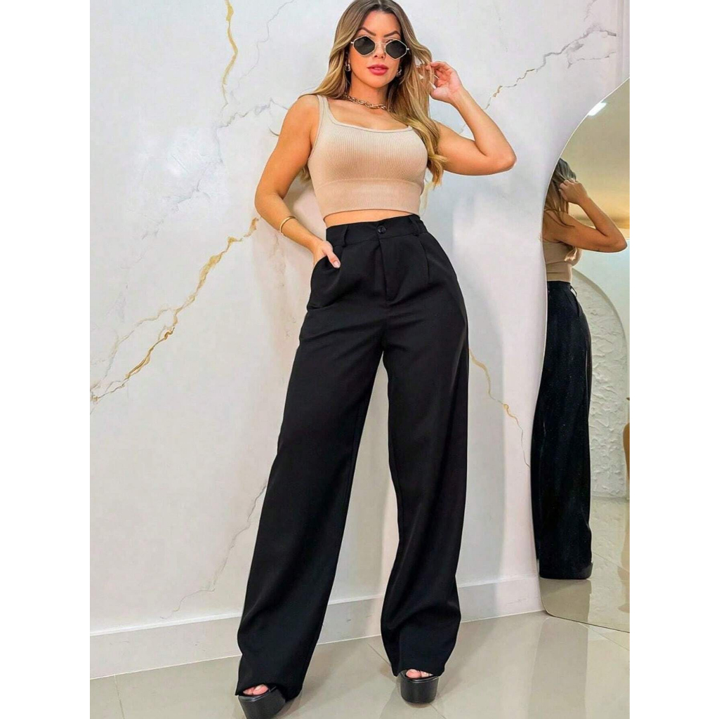 Calça Pantalona Feminina Alfataria com Botão e Ziper Wide Leg