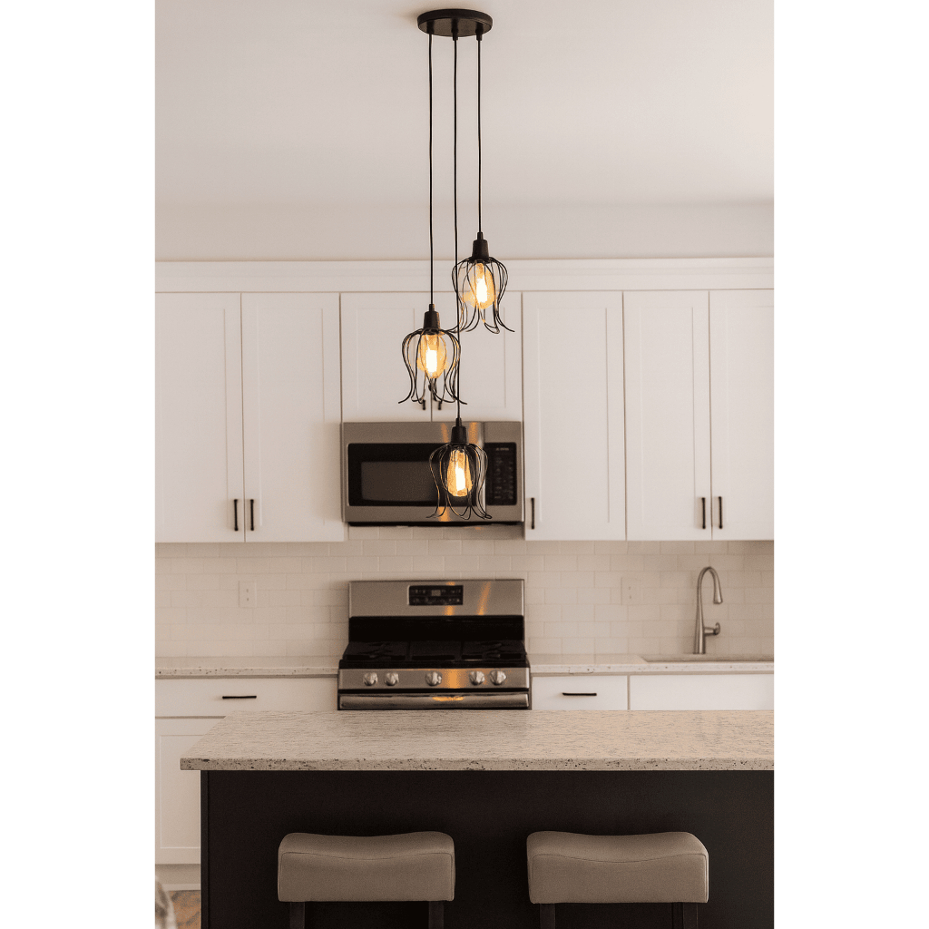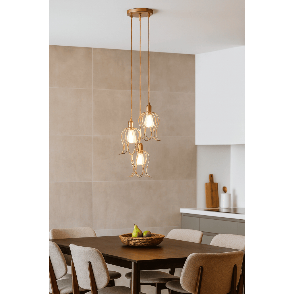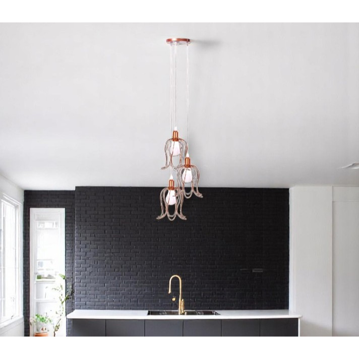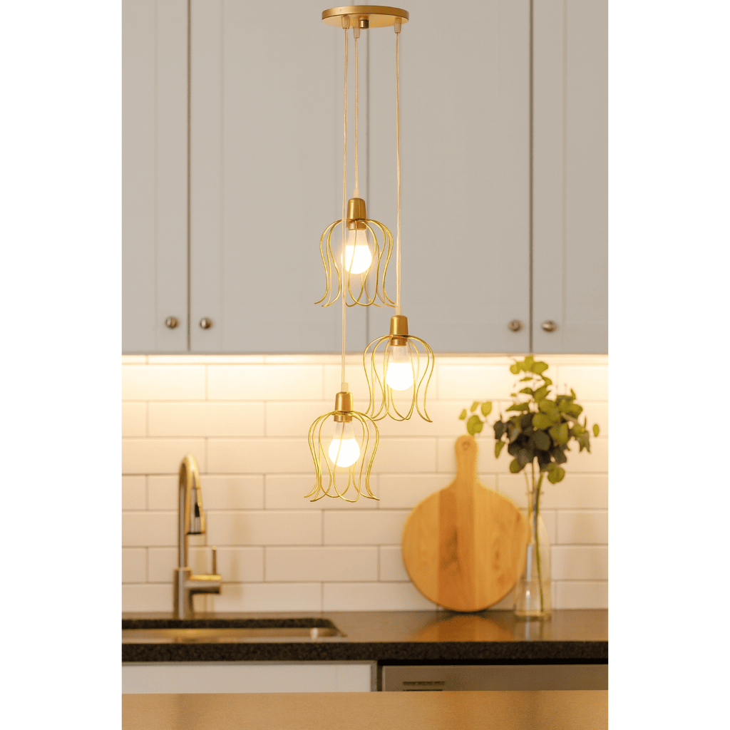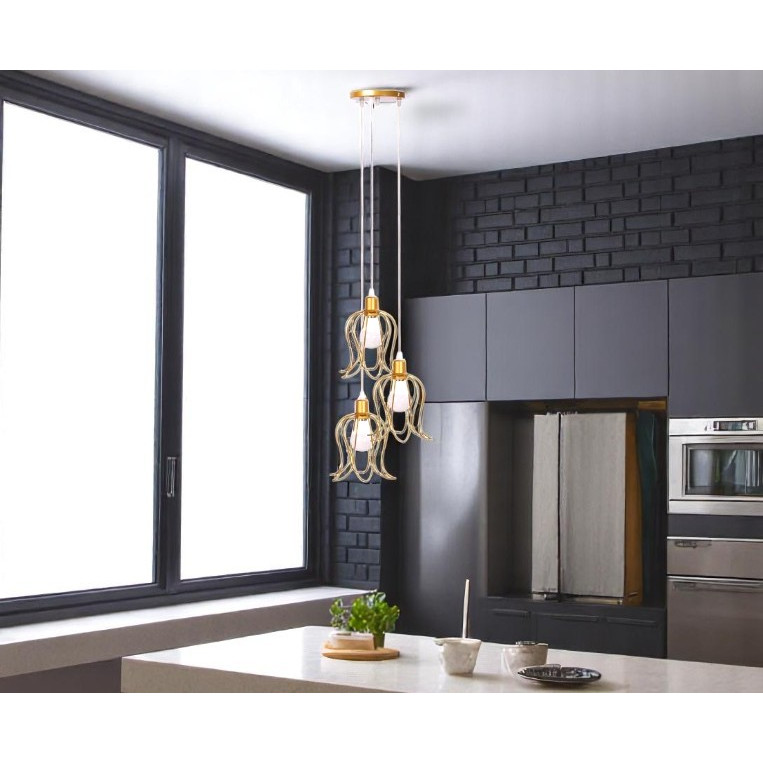 Conjunto Lustre Pendente Triplo Tulipa Aramado Luminária de Teto Moderno Cozinha Sala Área Gourmet