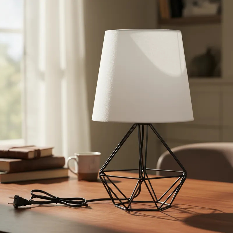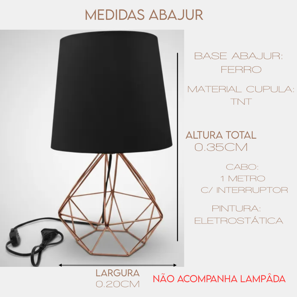 Abajur Luminária de Mesa Base Diamante Aramado C/ Cúpula Tecido Bivolt