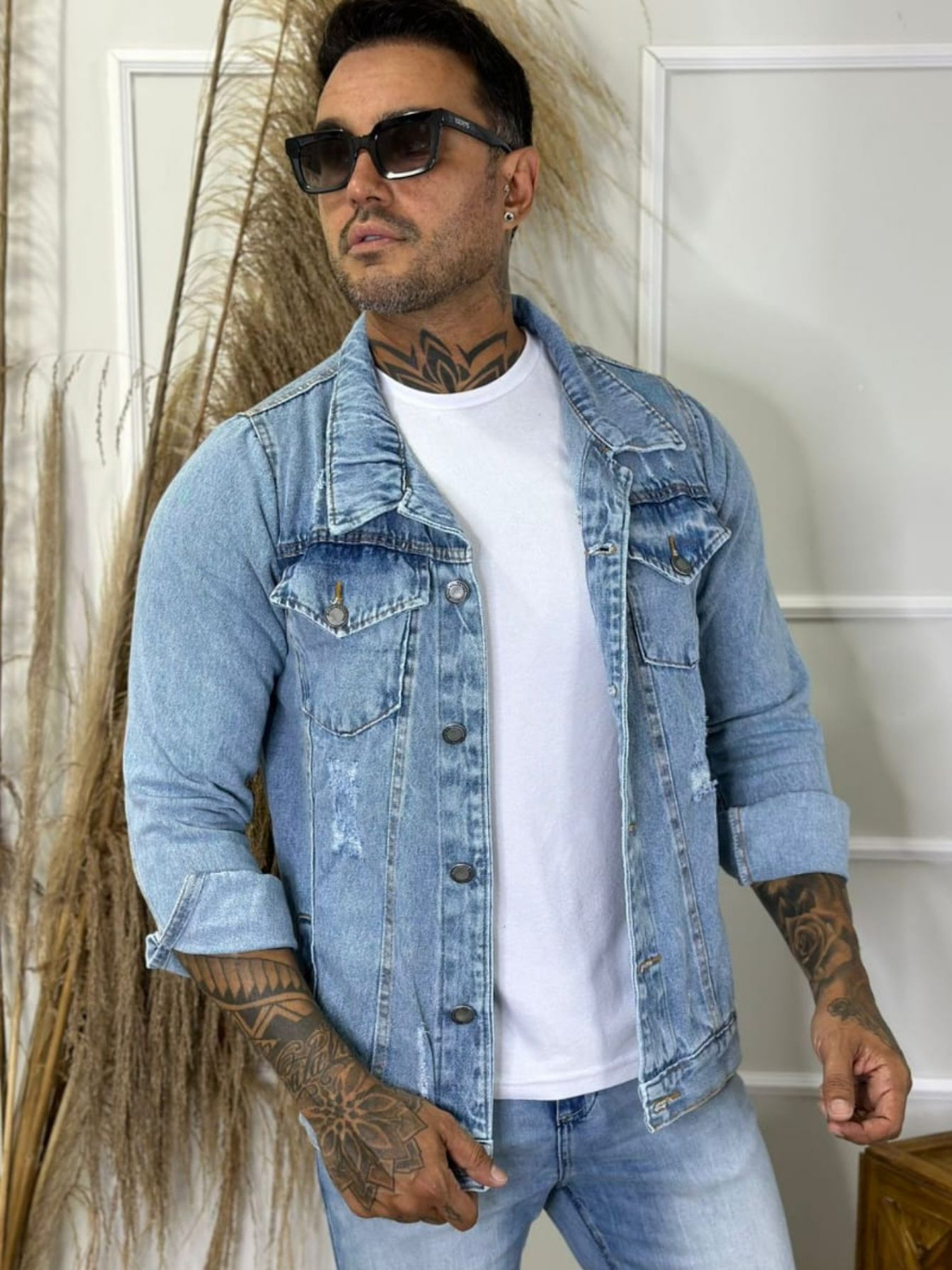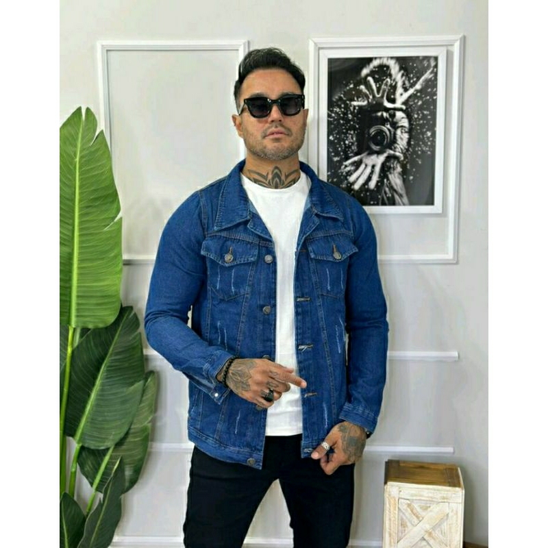 Jaqueta Jeans Masculina Azu Destroyer, Rasgada No Estilo