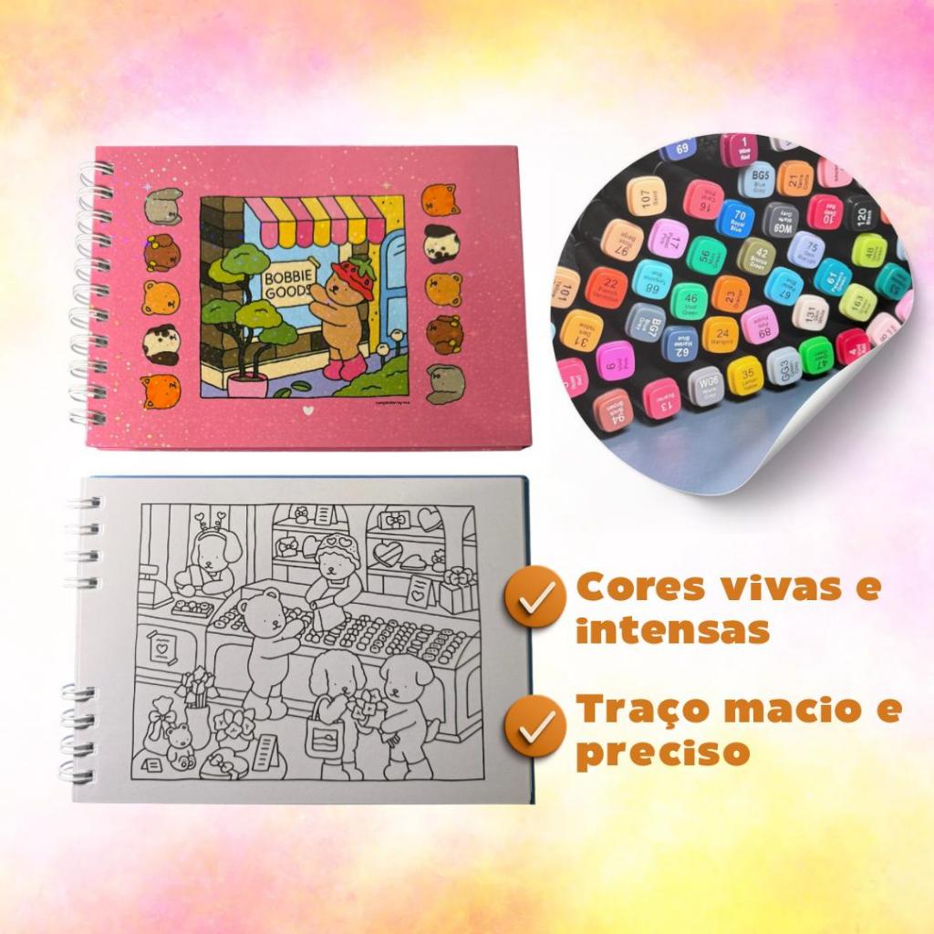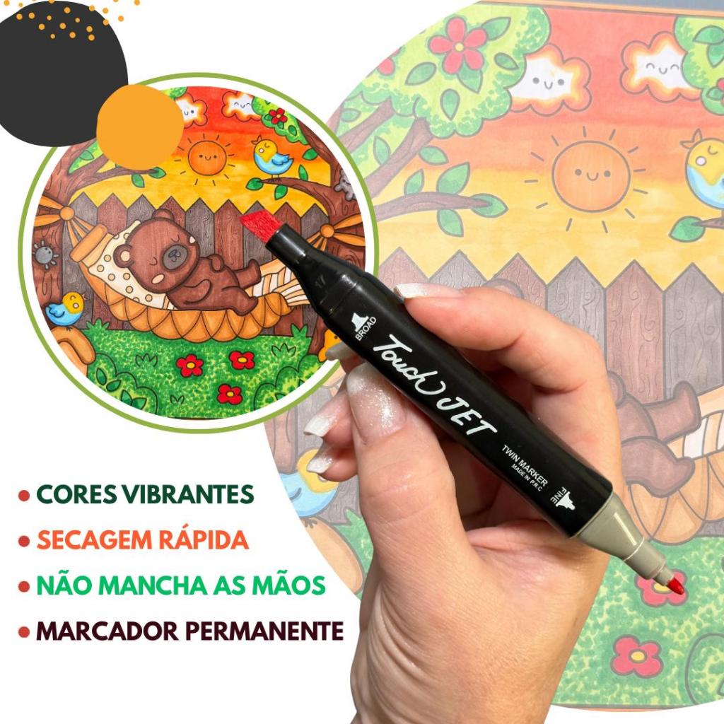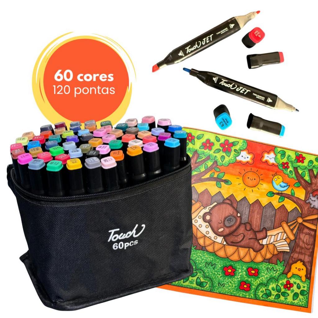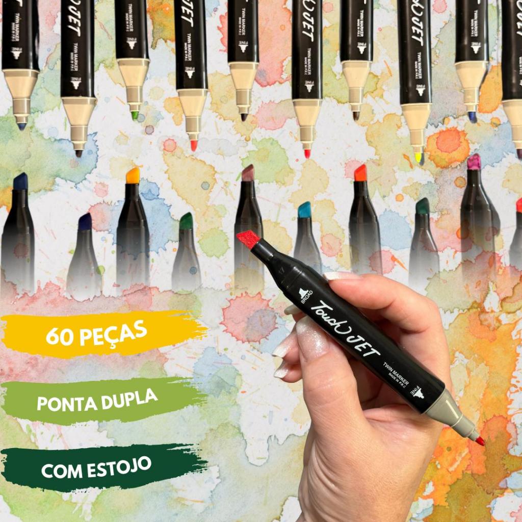Kit Canetinha 60 Cores Para Colorir - Ponta Dupla - Marcador Permanente