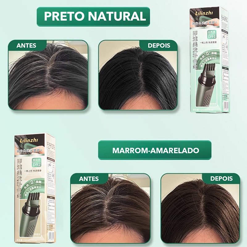 Bastão Retoque Flash On para Cobrir Cabelos Brancos - Instantâneo, Sem Contato com Pele, Fácil Aplicar