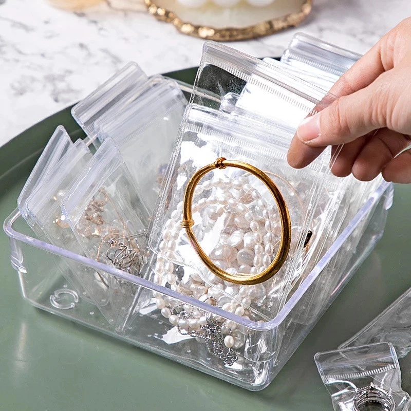 Saco De Jóias Transparente Anti Oxidação Brincos Colar Manual Saco De Armazenamento Portátil