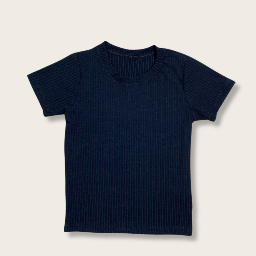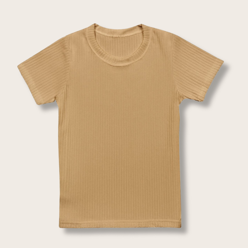 Blusa Básica Juvenil em Ribana Canelada de Manga Curta para Meninas