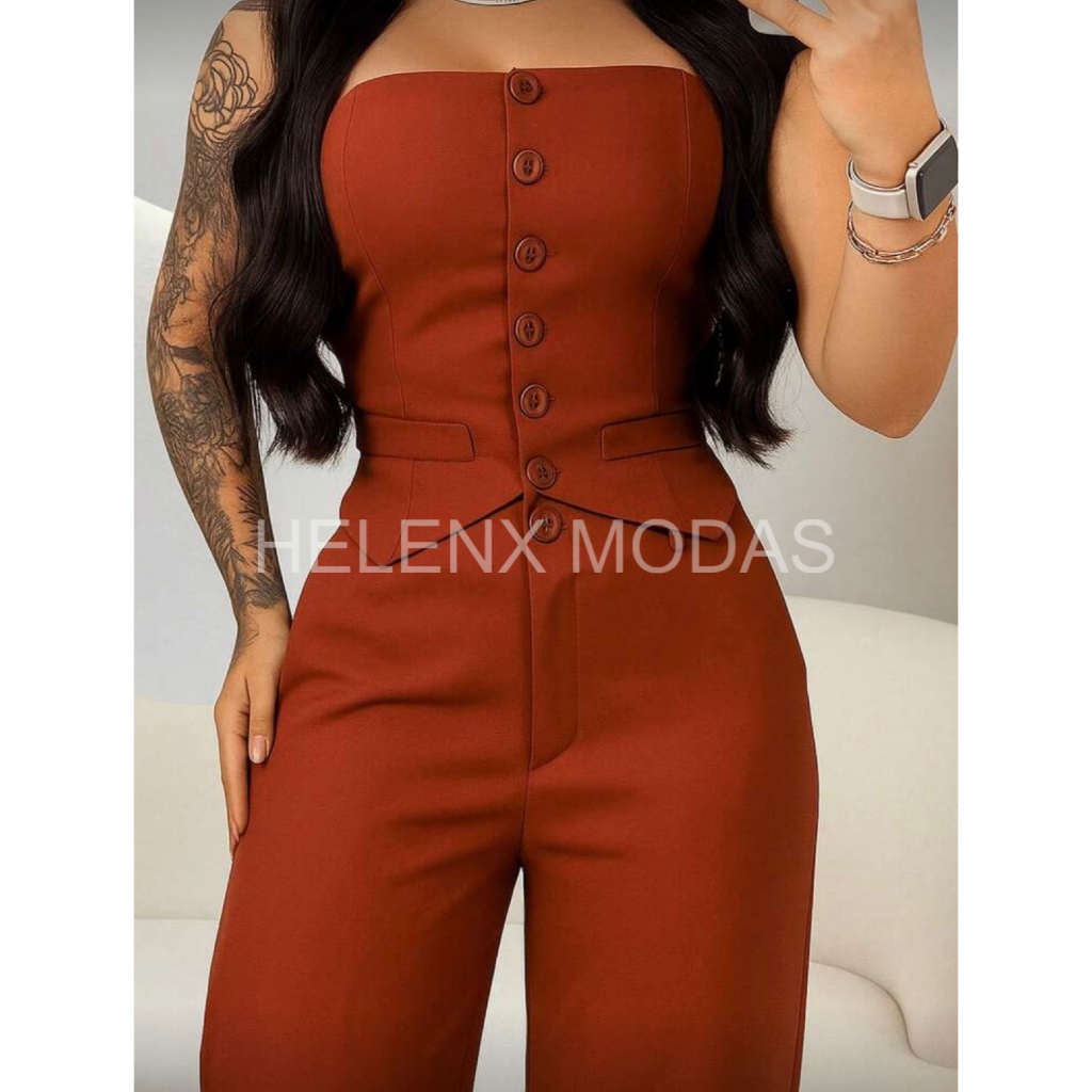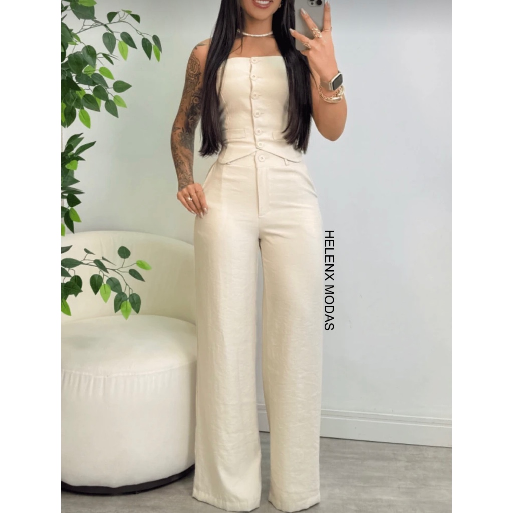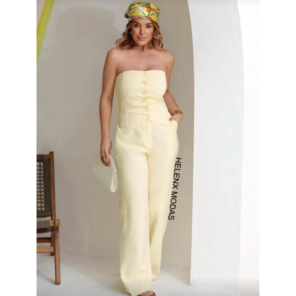 Conjunto Feminino Tomara Que Caia - Calça Pantalona - Louis Twill