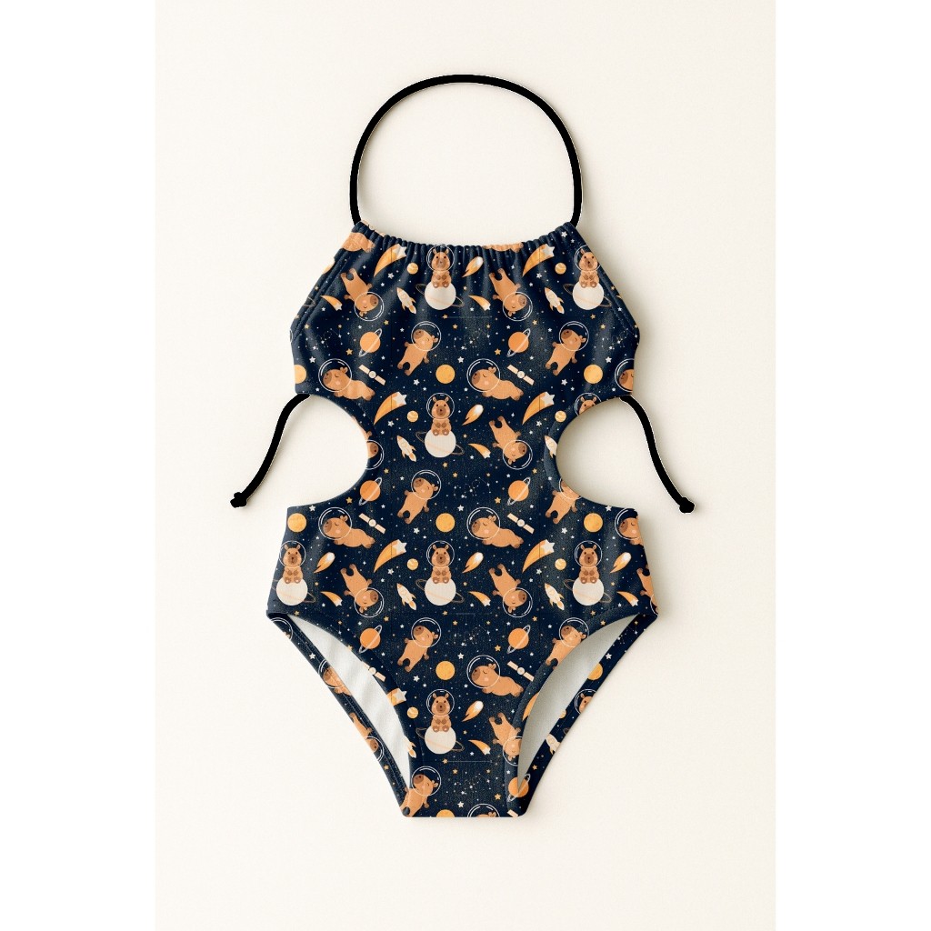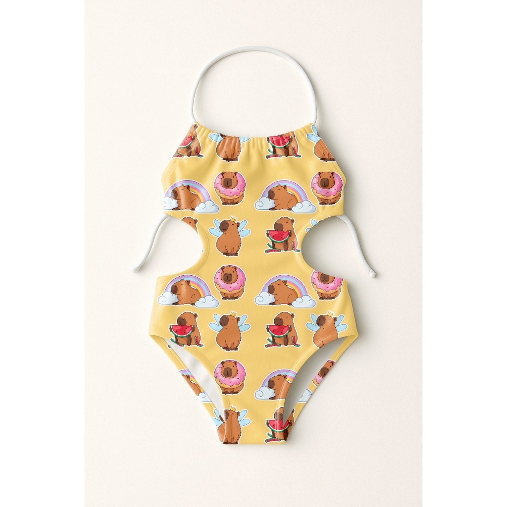 Maiô Infantil Frente Única Menina Feminino Moda Praia Natação Banho Estampas De Capivaras UV50+