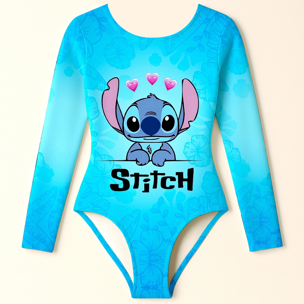 Maiô Infantil Menina Juvenil Manga Longa Proteção Solar UV50+ Roupa de Praia Banho Natação Estampado Desenhos Infantis