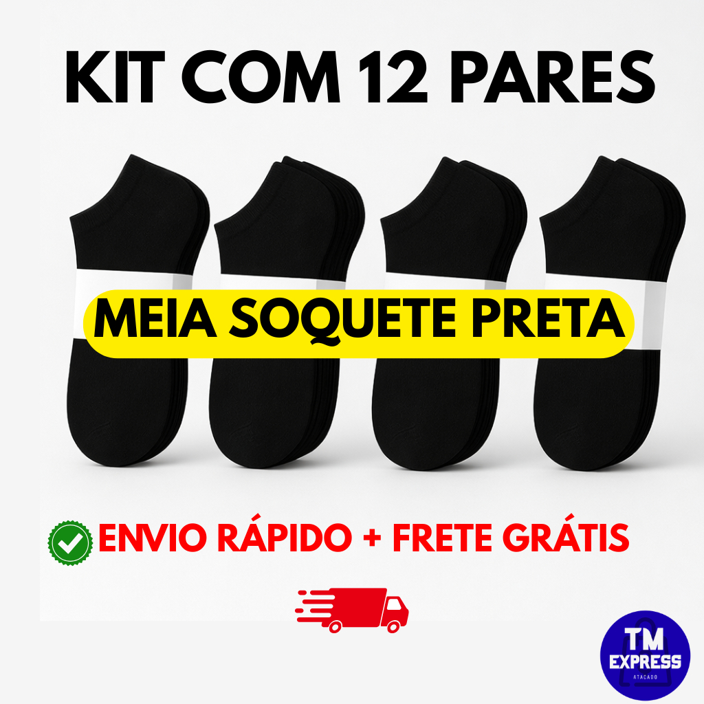 Kit 3 a 12 Pares de Meias Soquete Pretas Unissex Menor Preço