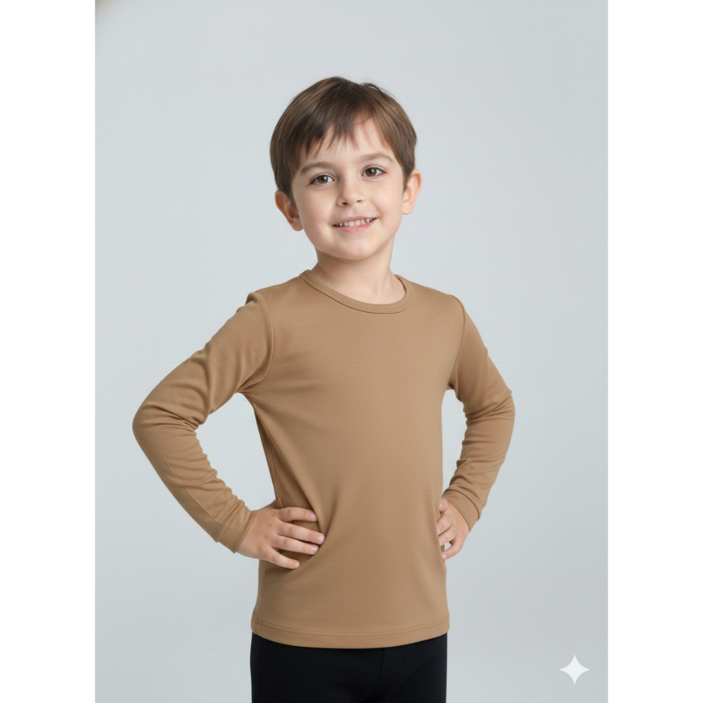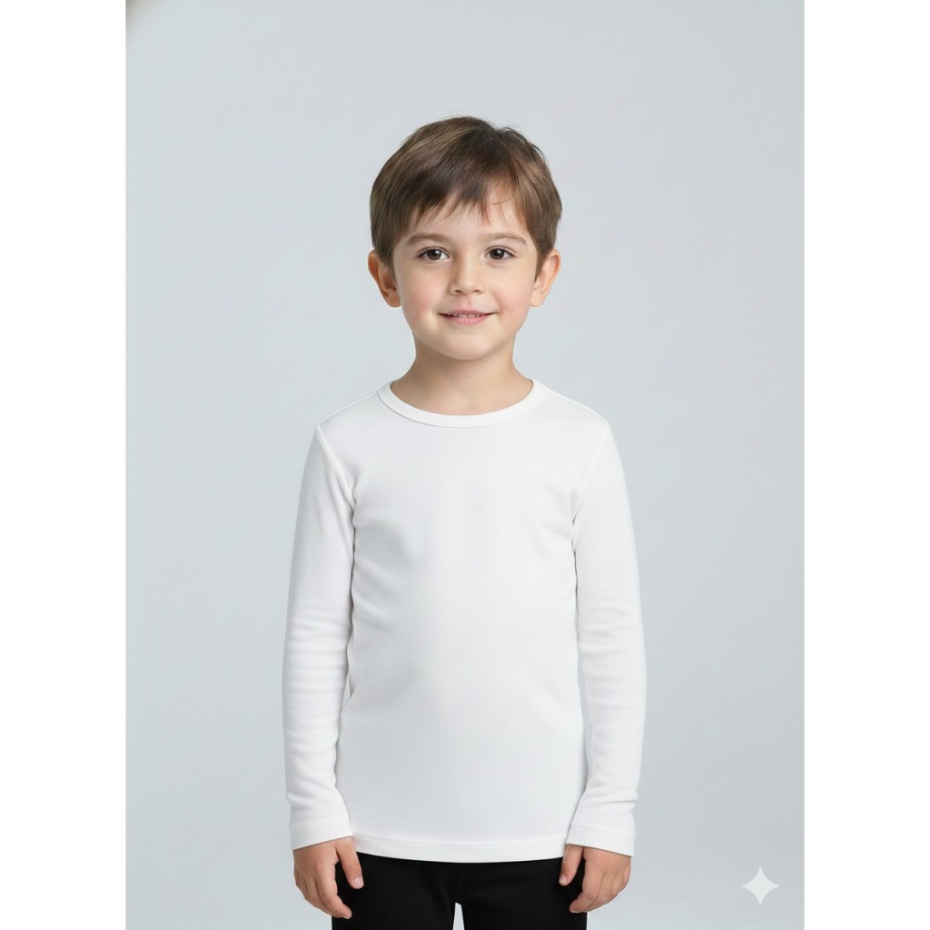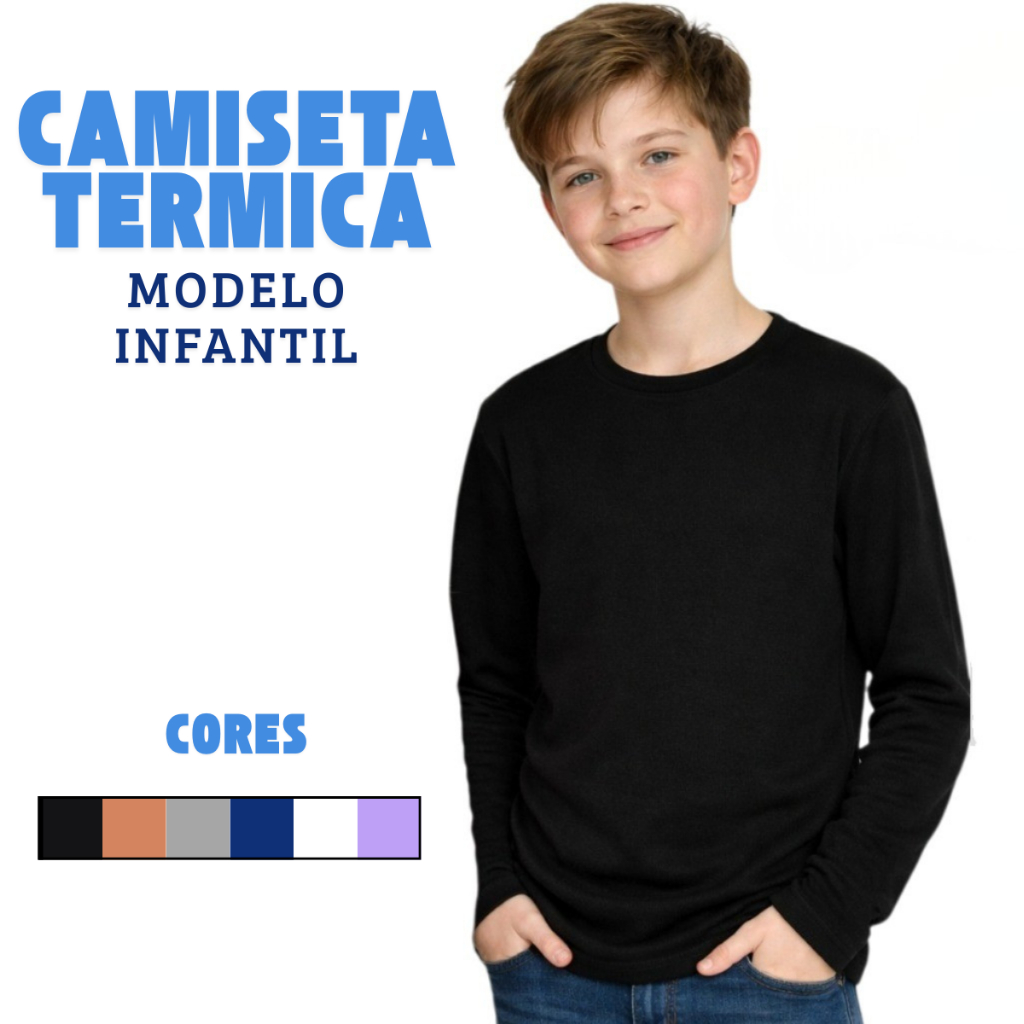 Camiseta Manga Longa Infantil Térmica Peluciada Básica Unissex Segunda Pele Com Proteção UV