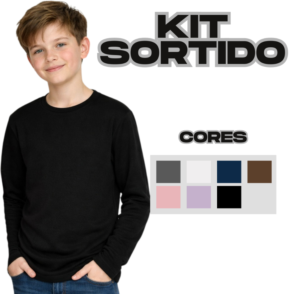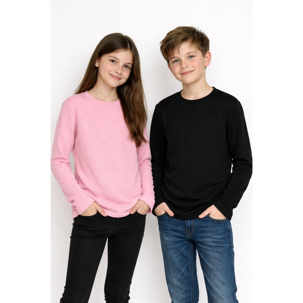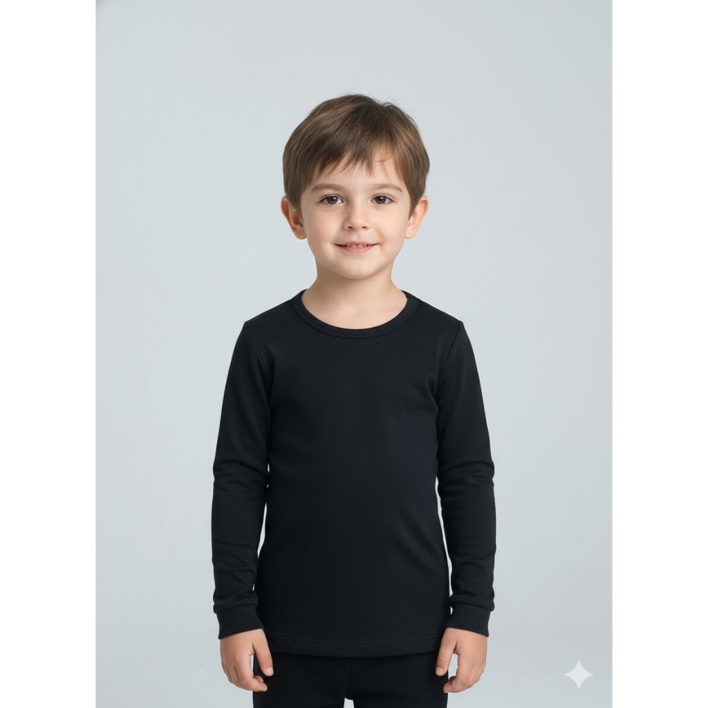 Camiseta Manga Longa Infantil Térmica Peluciada Básica Unissex Segunda Pele Com Proteção UV