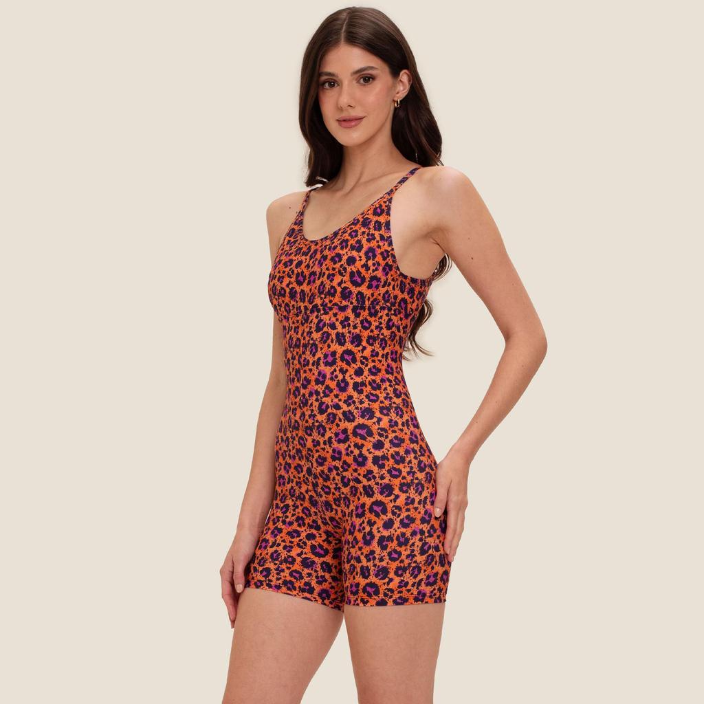 Macaquinho Mykonos Estampa Onça Coral Poliamida Com Bojo