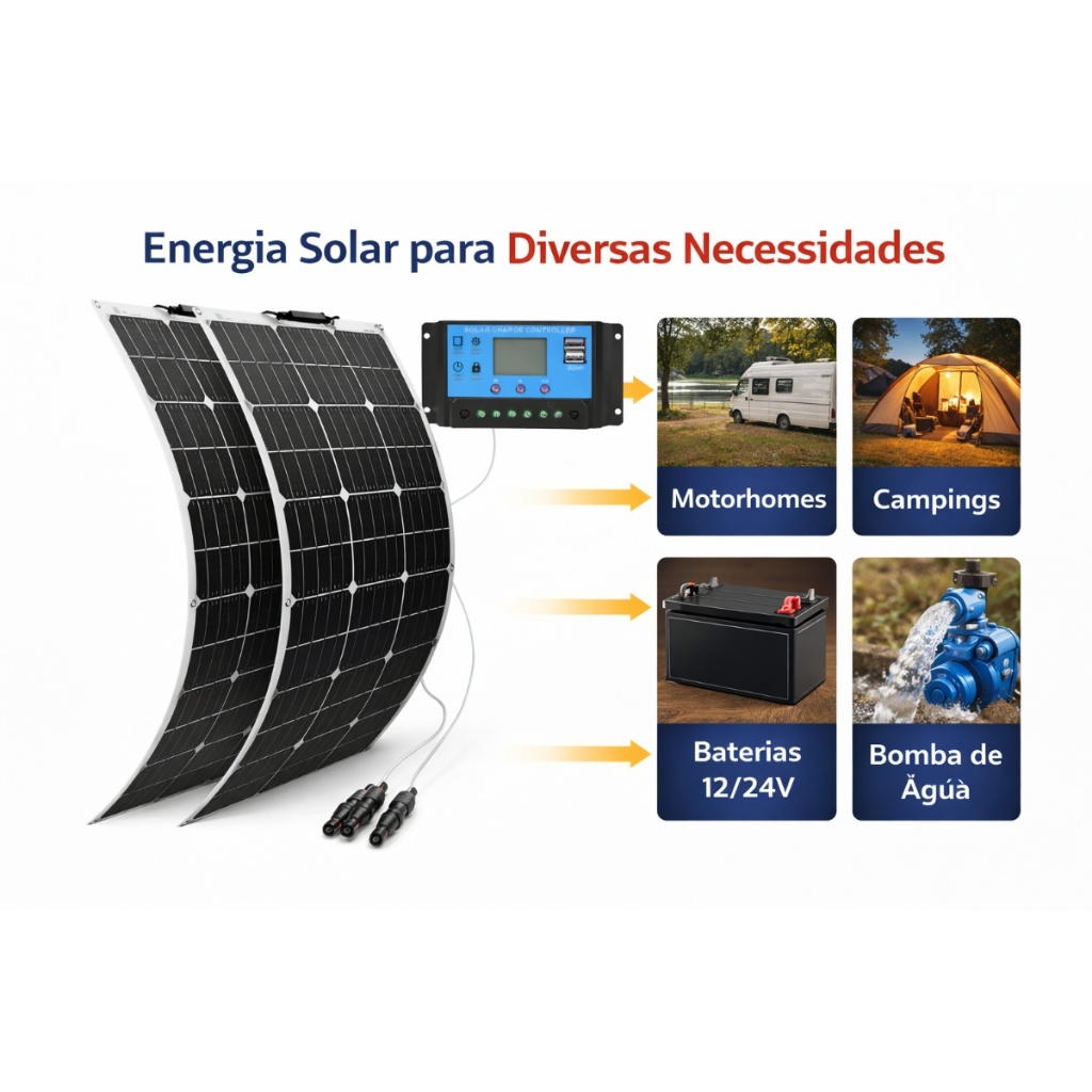Kit 2 Placas Solar Caminhão Motorhome 200w Flexível + Controlador PWM 30a