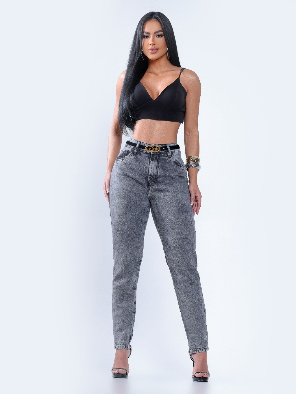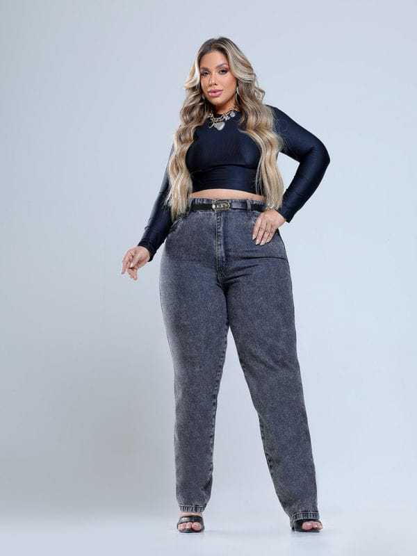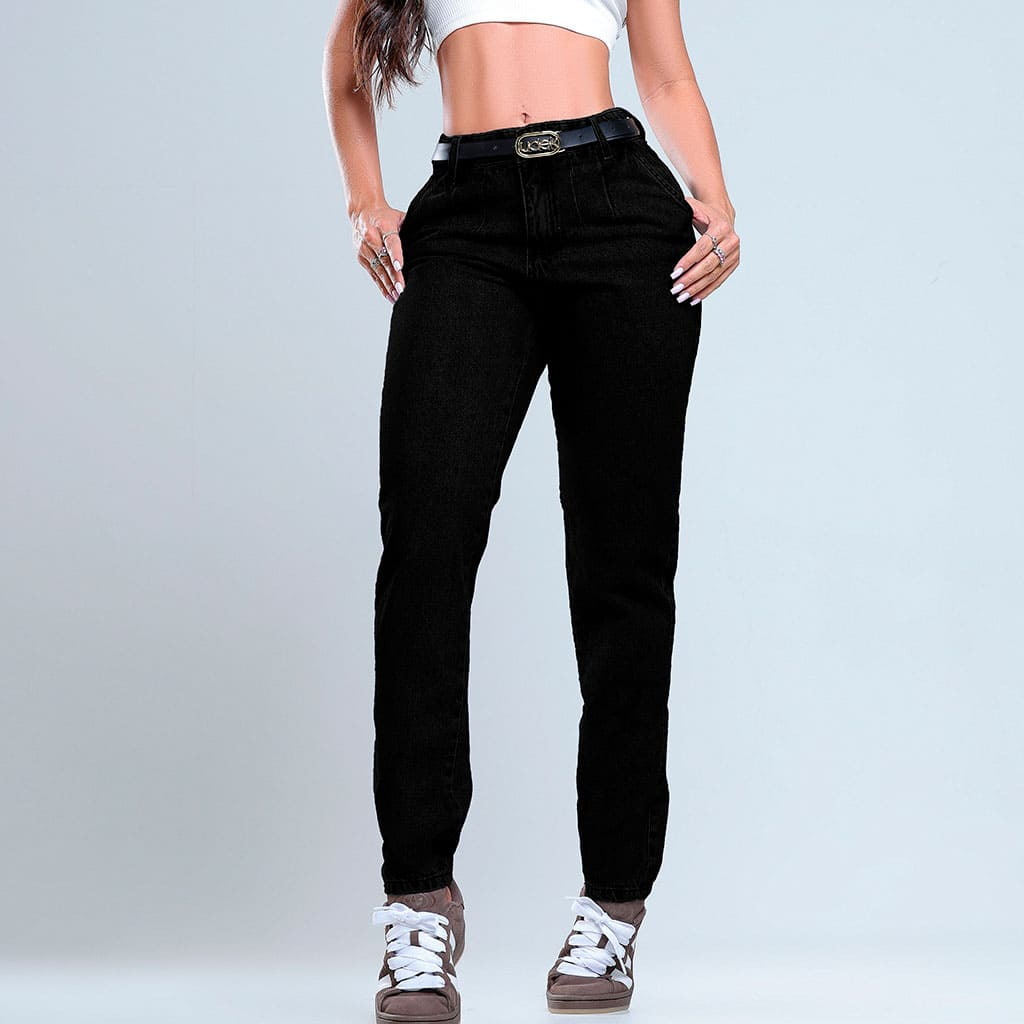 Calça Feminina Mom Jeans Com Cinto Algodão PREMIUM 34 ao 52