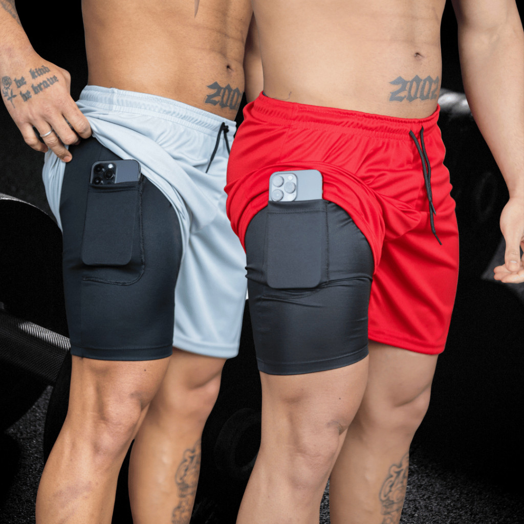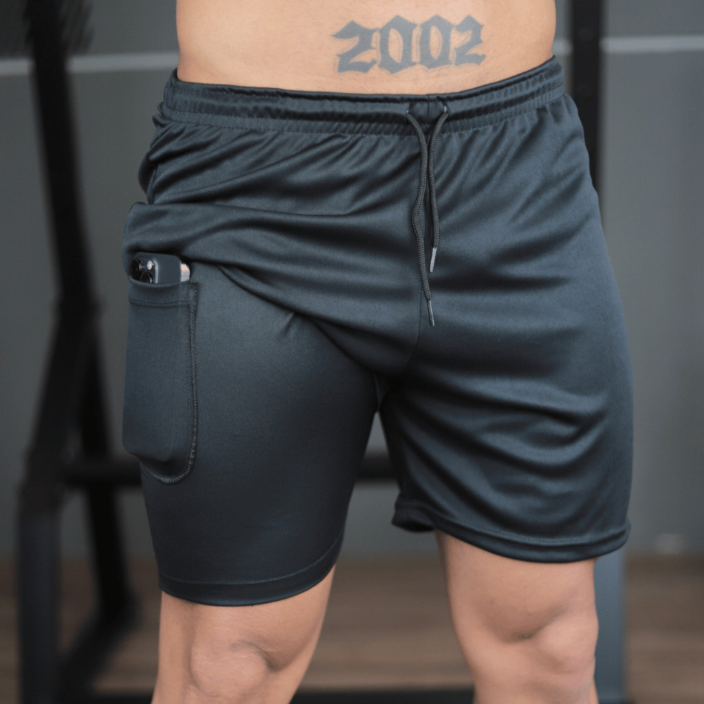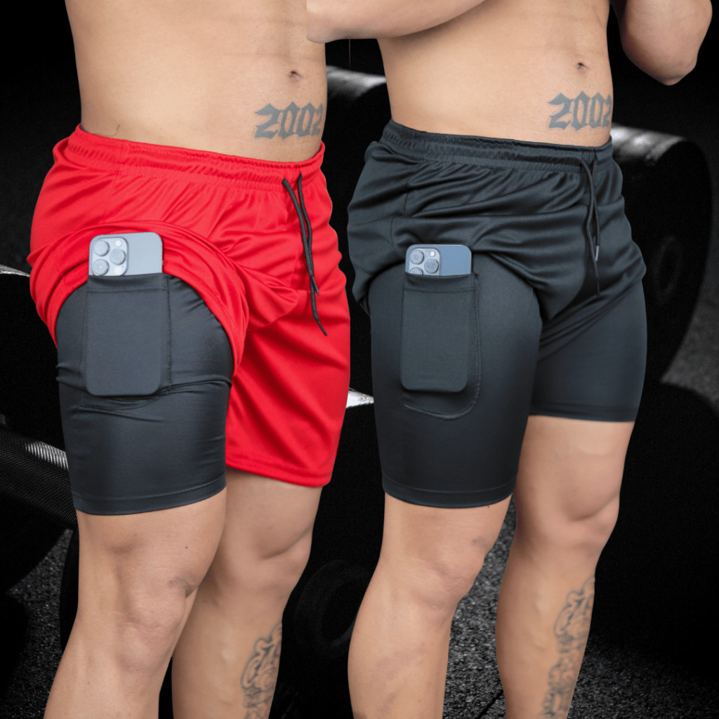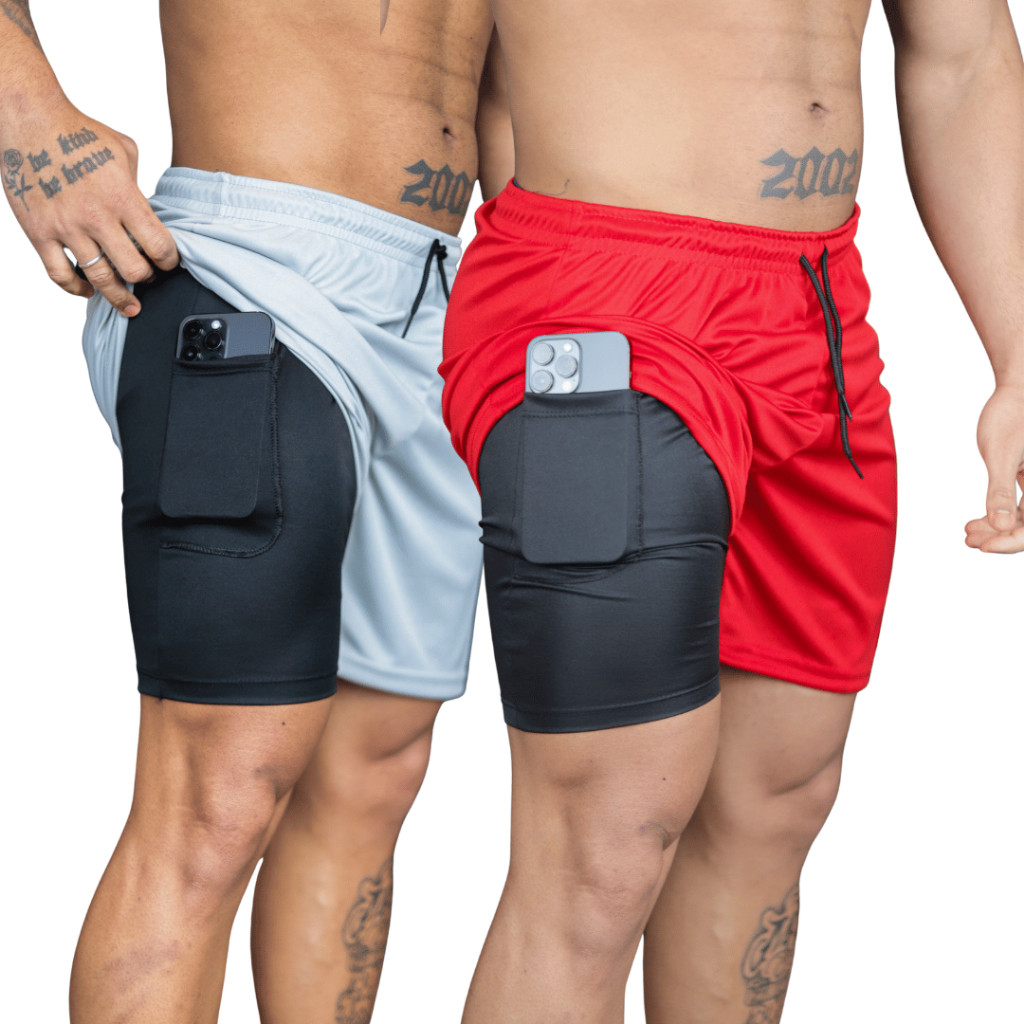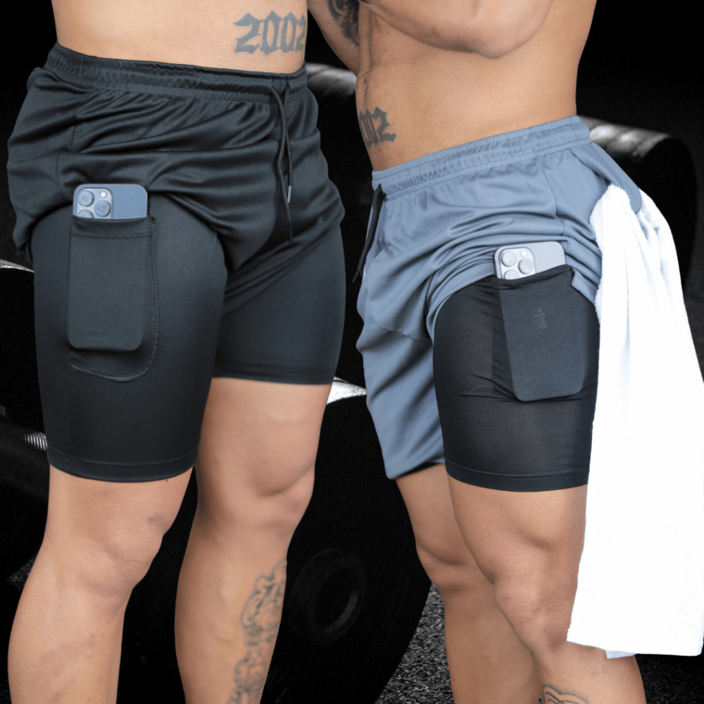 KIT 2 Shorts 2 em 1 Bermuda Dupla Academia Com Bolso Interno Nvidade
