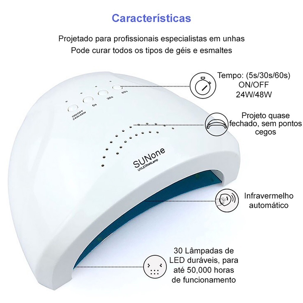 2x Cabine Estufa Forninho Sun One LED UV 48w Bivolt De Unhas Nail Designer Manicure