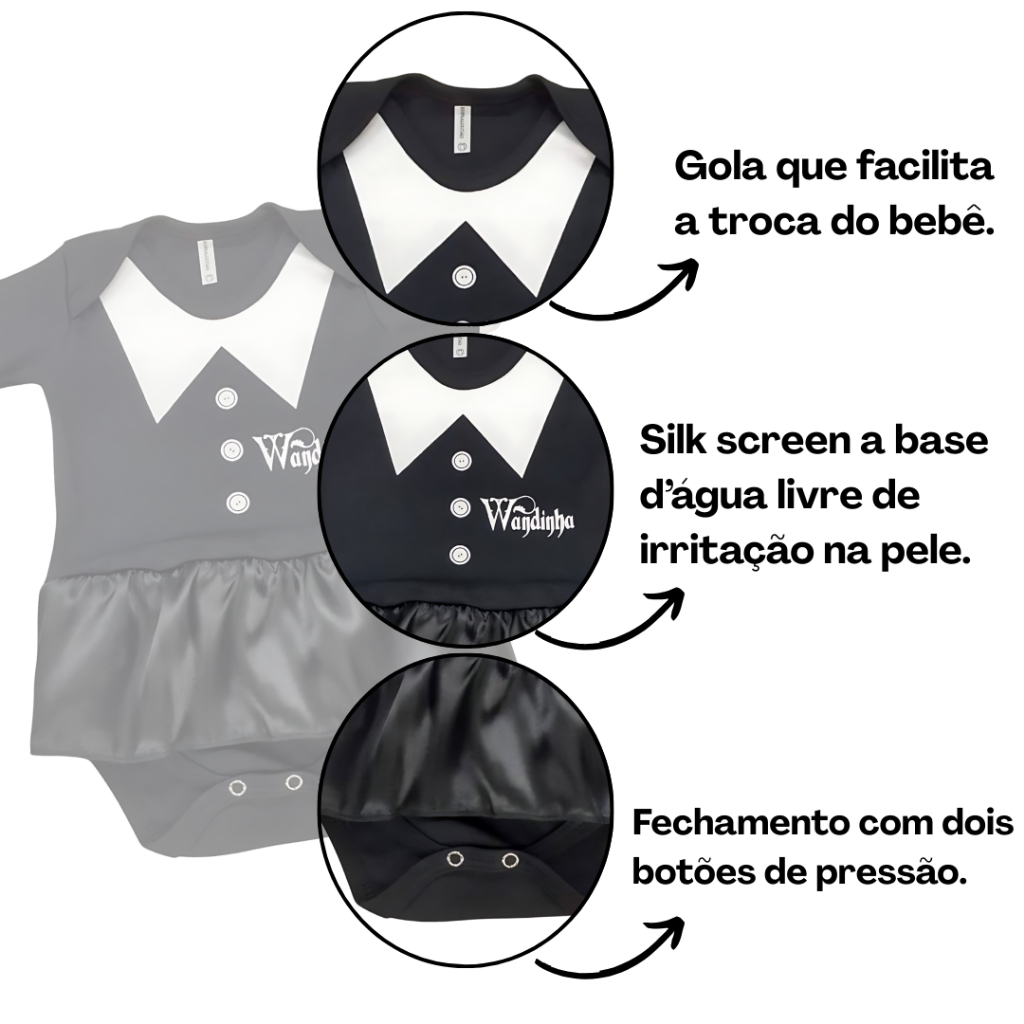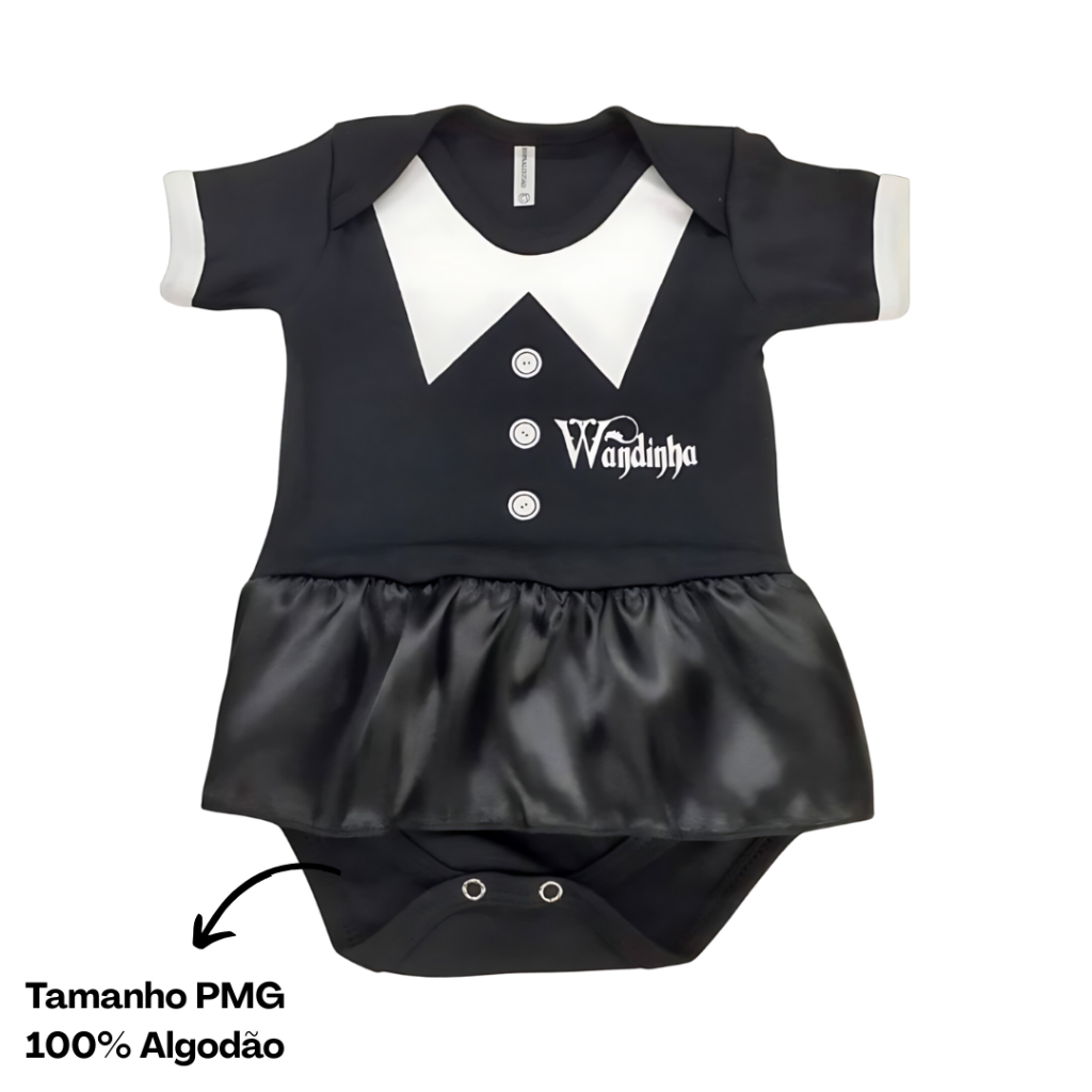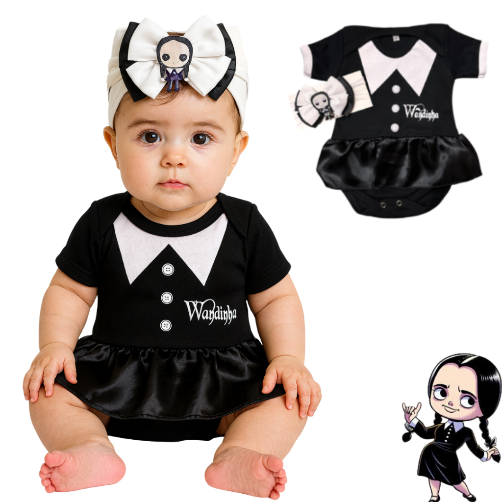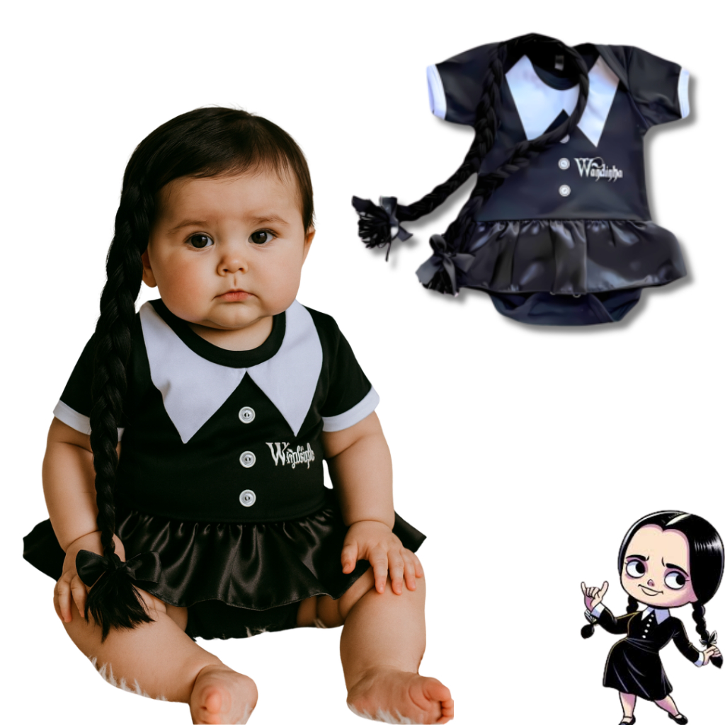 Body Bebe Menina Temático Para Mêsversario Wandinha Adams - Bodie Manga Curta