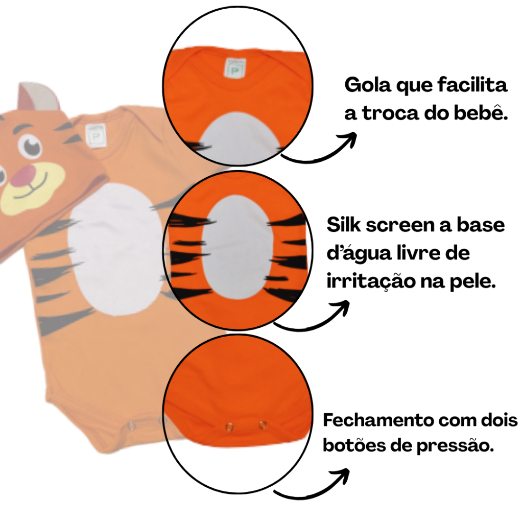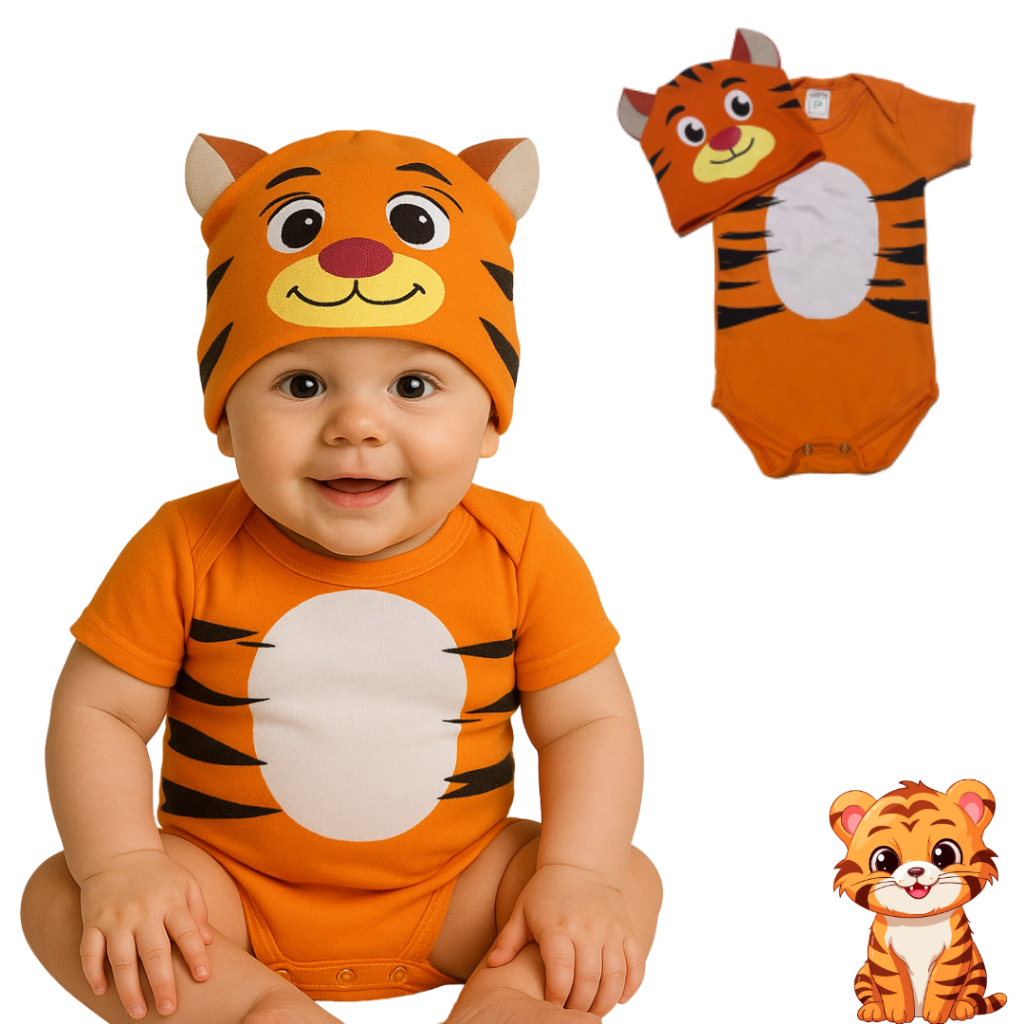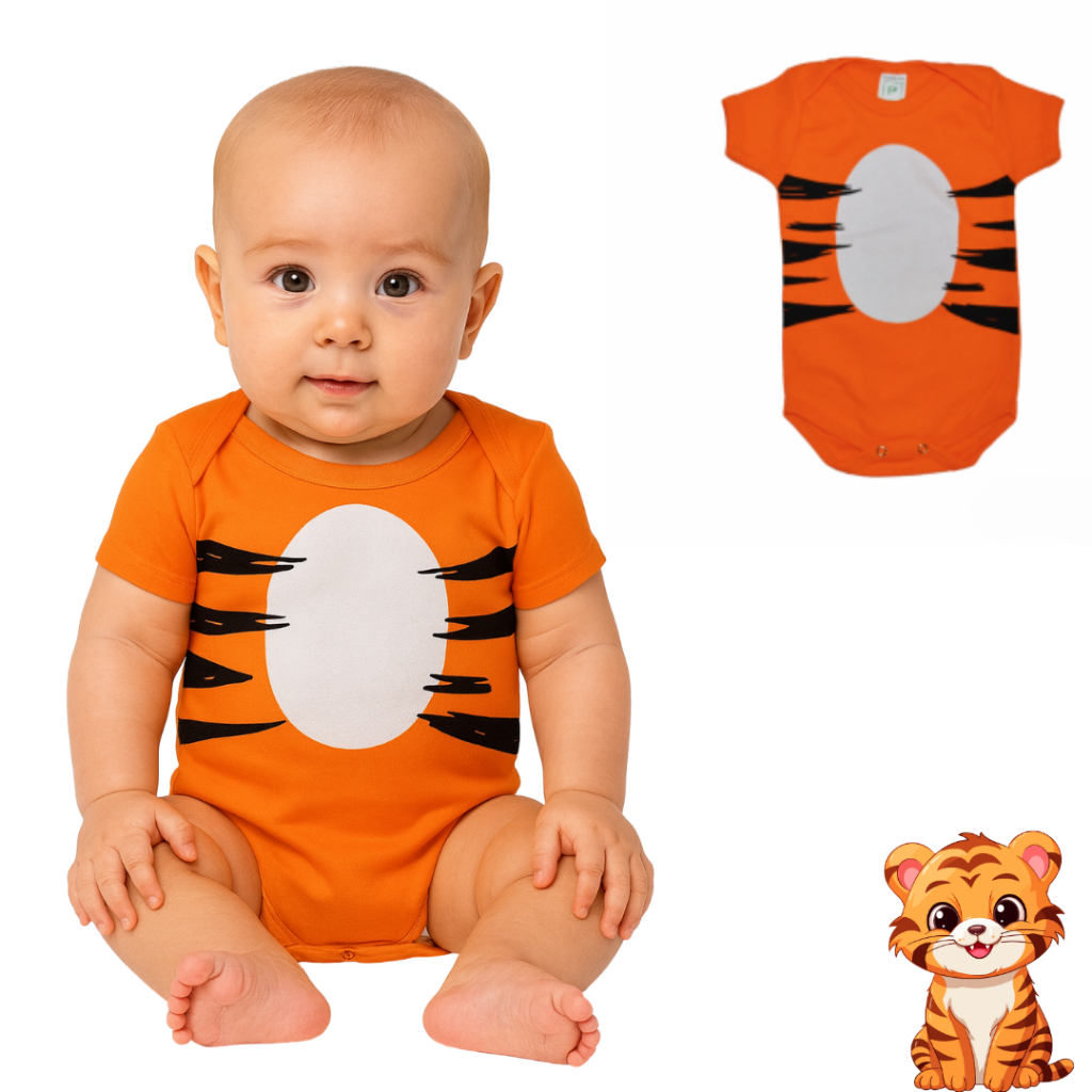 Body Bebe Menino Infantil Temático Para Mesversario Safari - Tigre