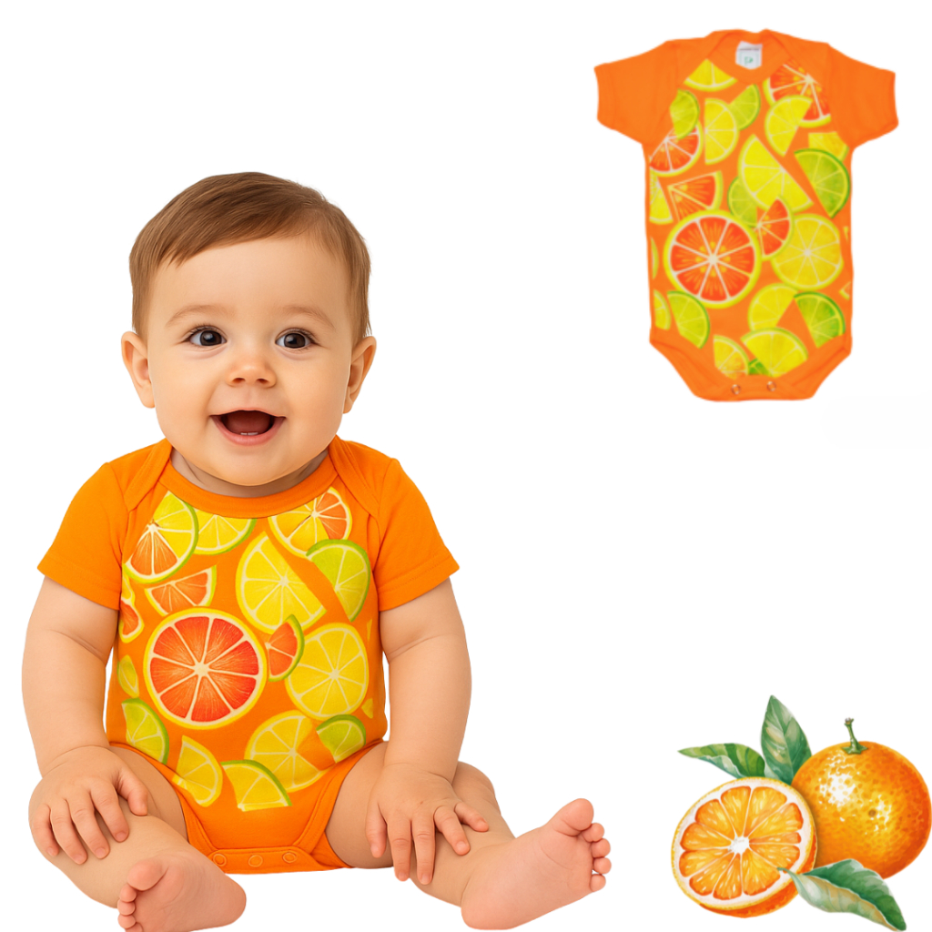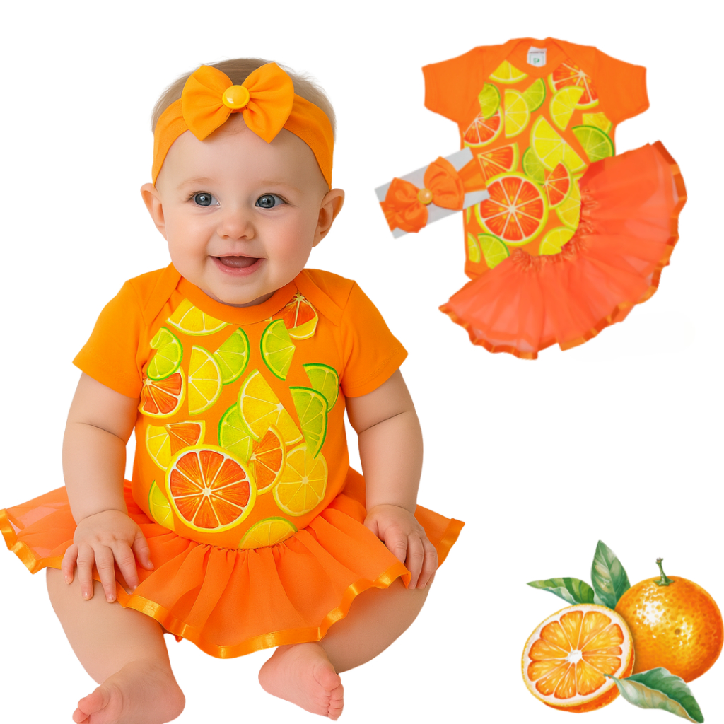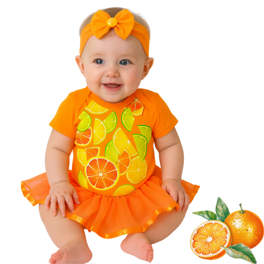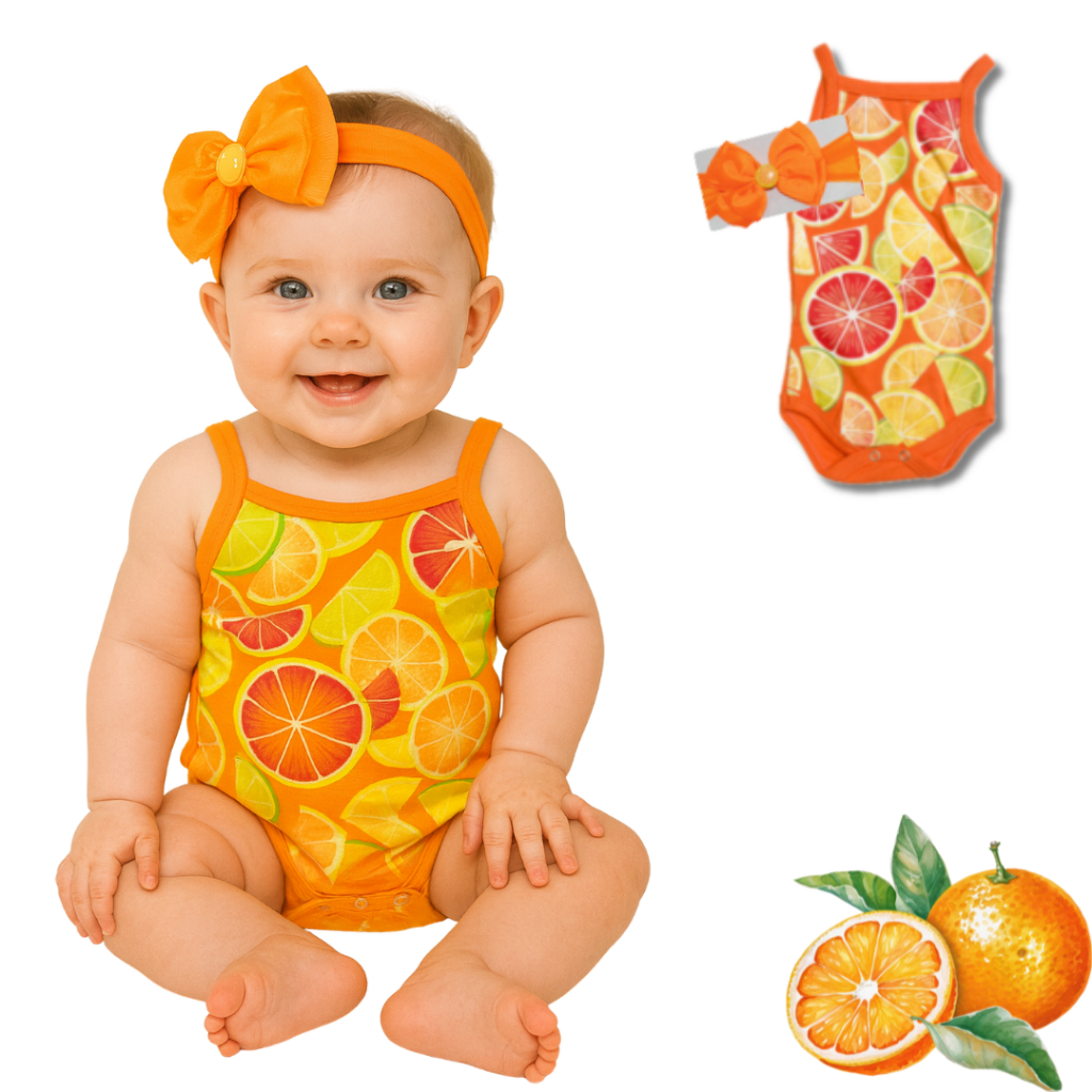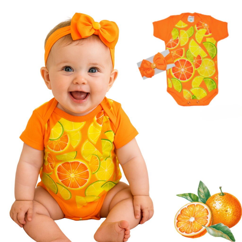Body Bebê de Frutinha Laranja – Bori + Laço - kit Mêsversario
