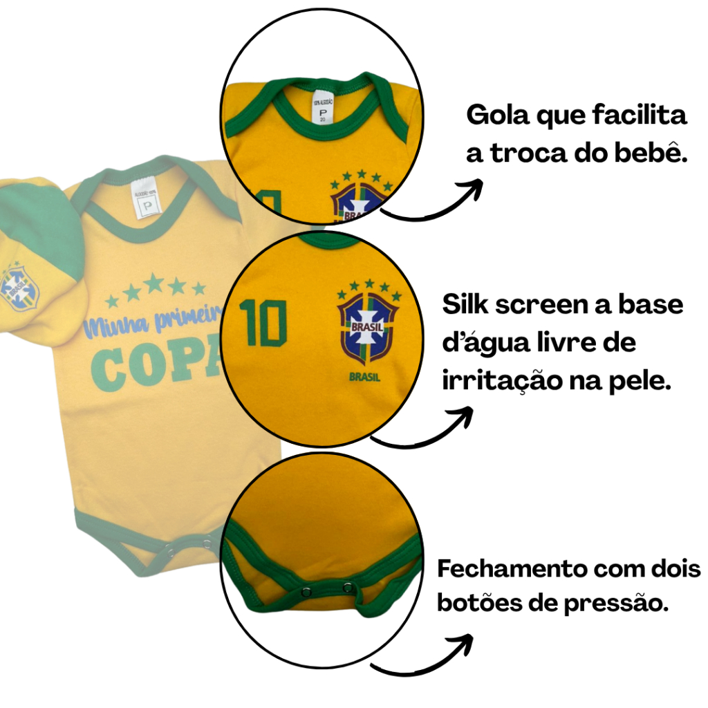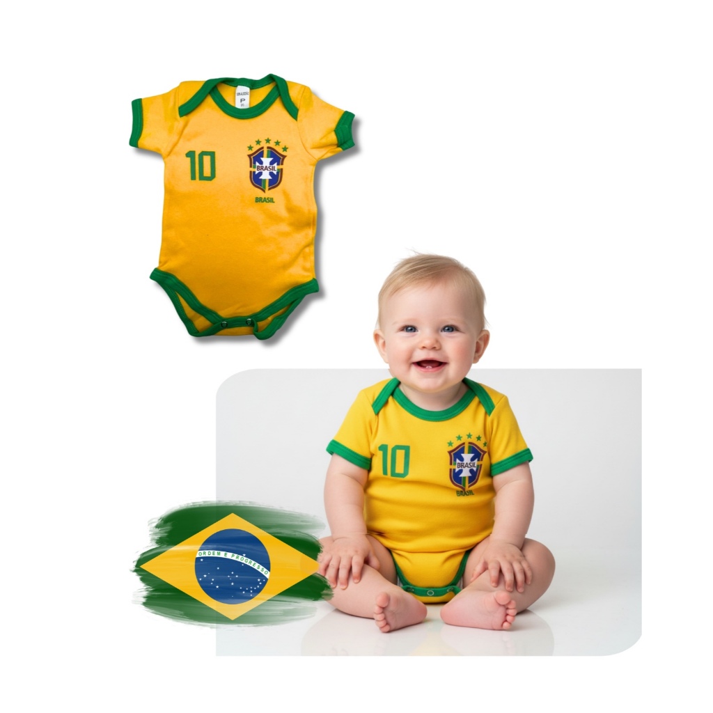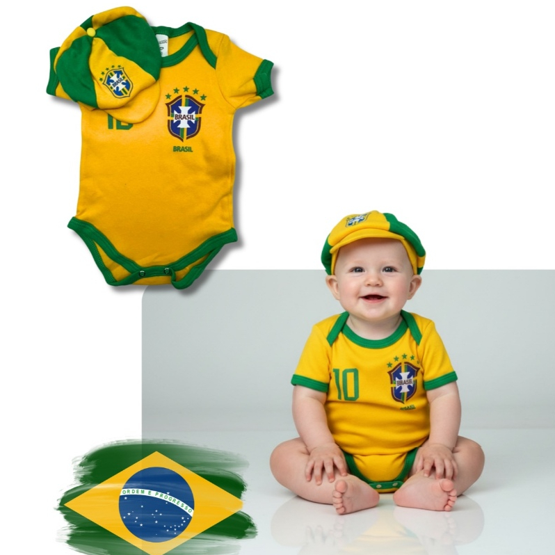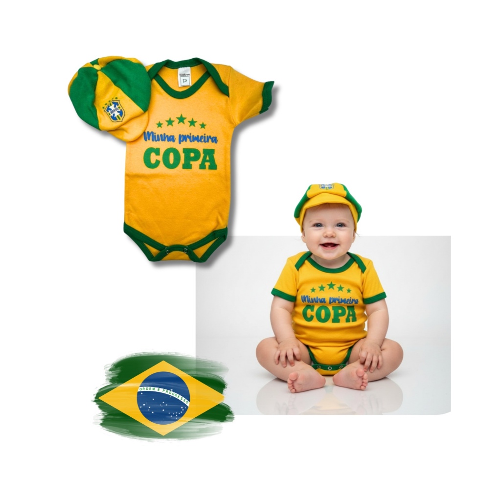 Body Bebe Camisa Brasil Temático Mêsversario Copa do Mundo - Seleção Brasileira - Copa do Mundo - Vários Modelos