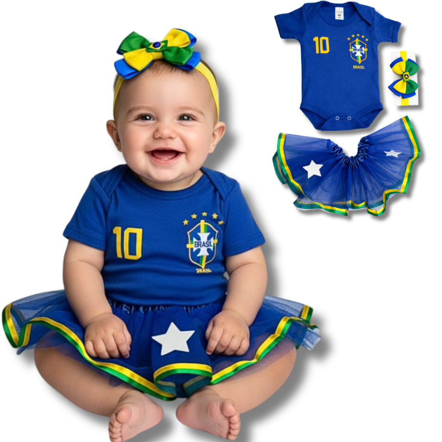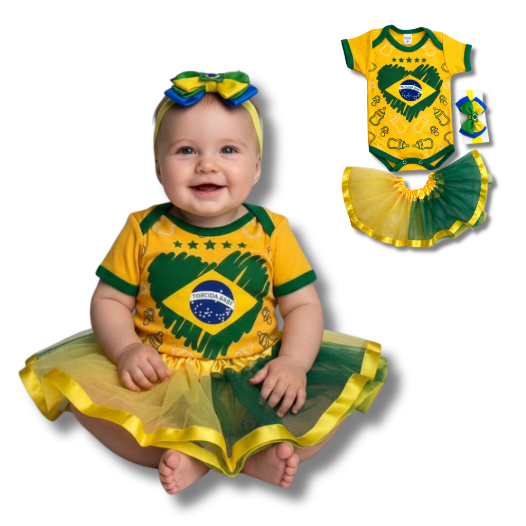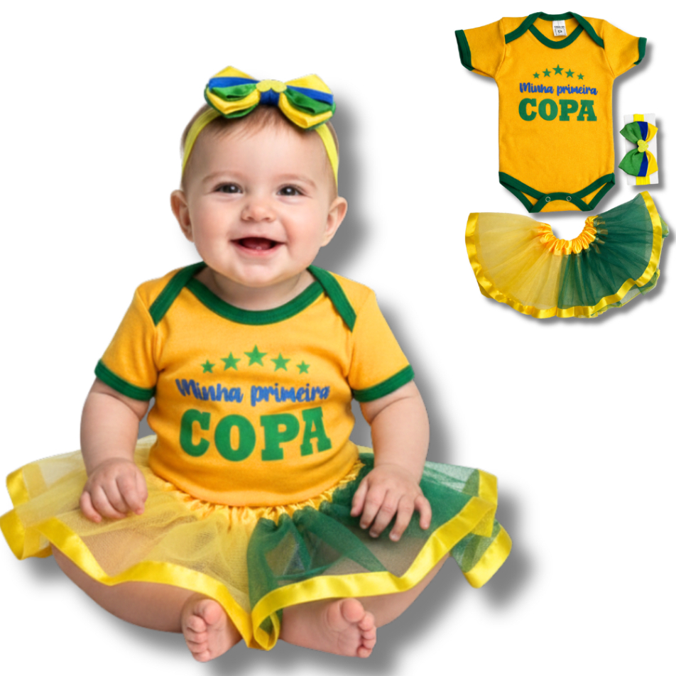 Body Bebe Camisa Brasil Temático Mêsversario Copa do Mundo - Seleção Brasileira - Copa do Mundo - Vários Modelos