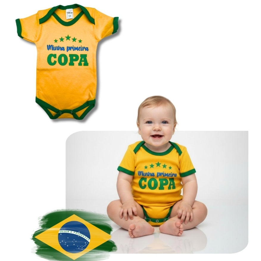 Body Bebe Brasil Temático Mêsversario Copa do Mundo - Seleção Brasileira - Copa do Mundo - Vários Modelos