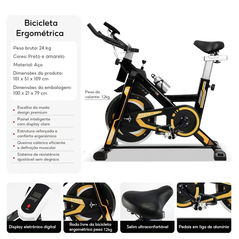 Bicicleta Spinning Ergométrica Para Exercícios Com Monitor Profissional Sport Suporta até 120kg