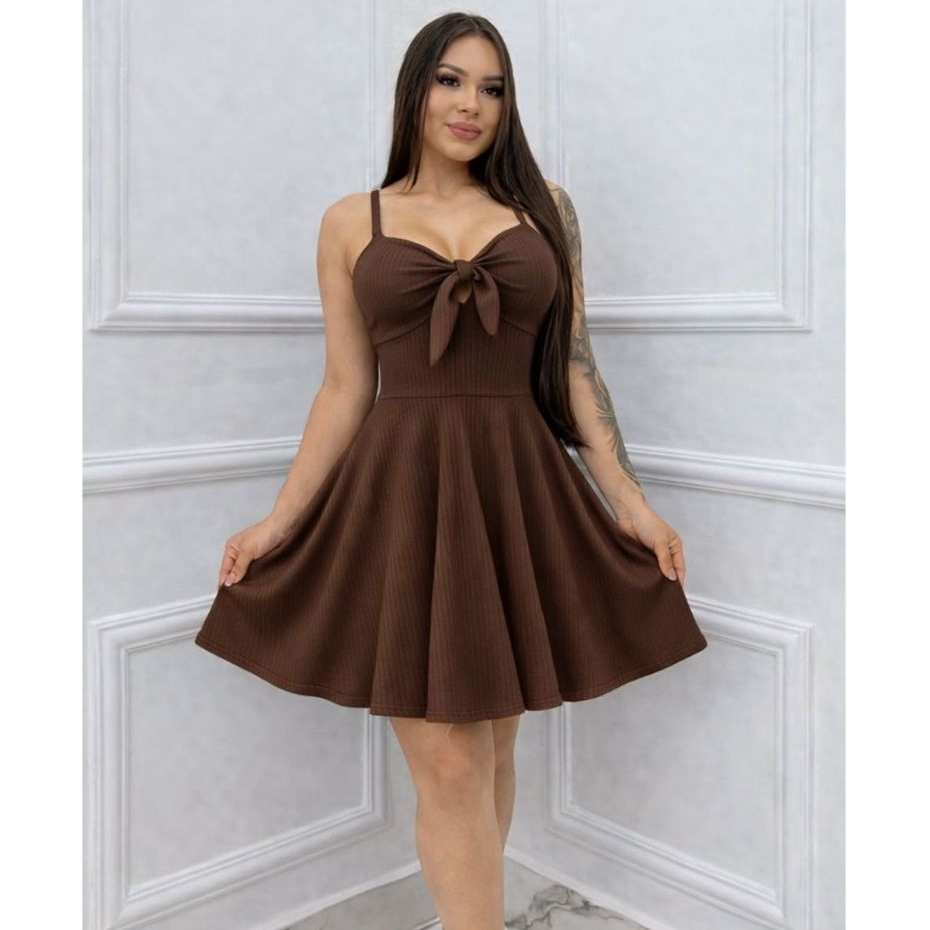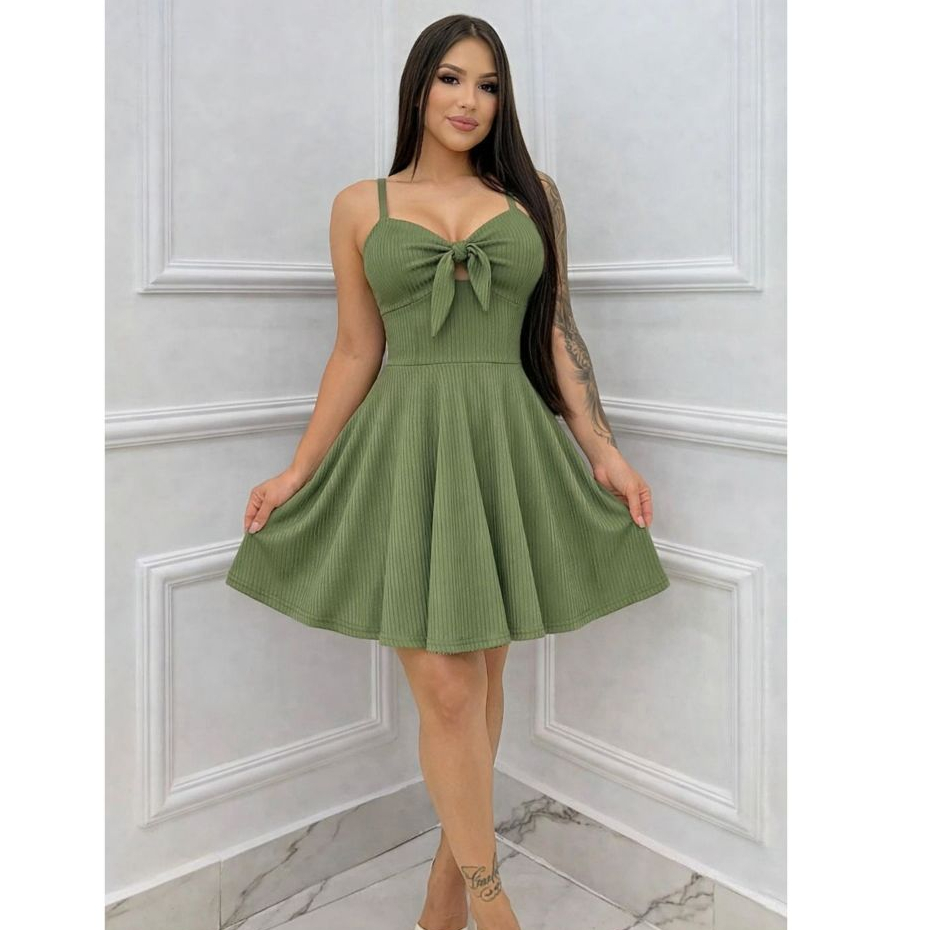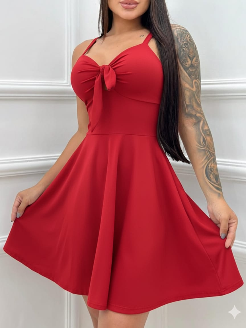 Vestido Feminino Estampado Rodado Alcinha com Bojo Amarração Frente Soltinho Dia Dia