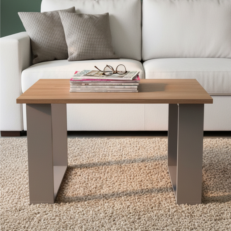 Mesa de Centro Amadeirada com Pés Cinza – Design Moderno 60×45×35 | Lançamento para Ambientes Premium