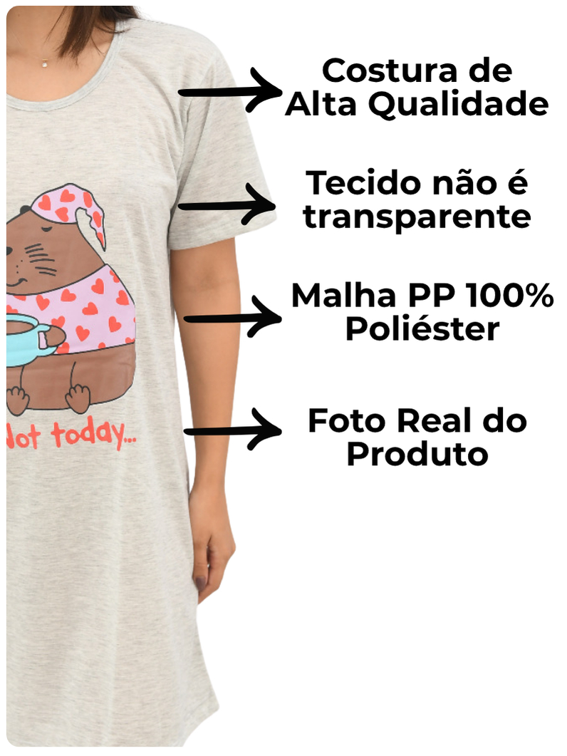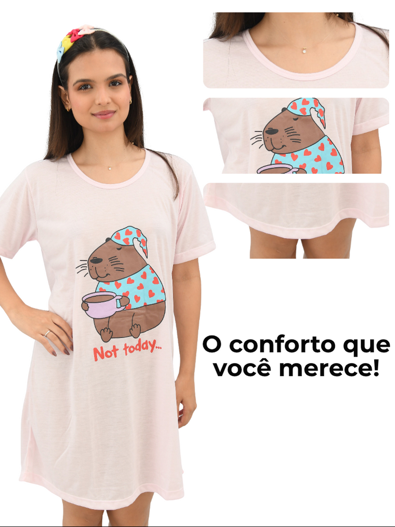 Camisola Feminina Estampada Capivara Confortável e Estilosa para Dormir